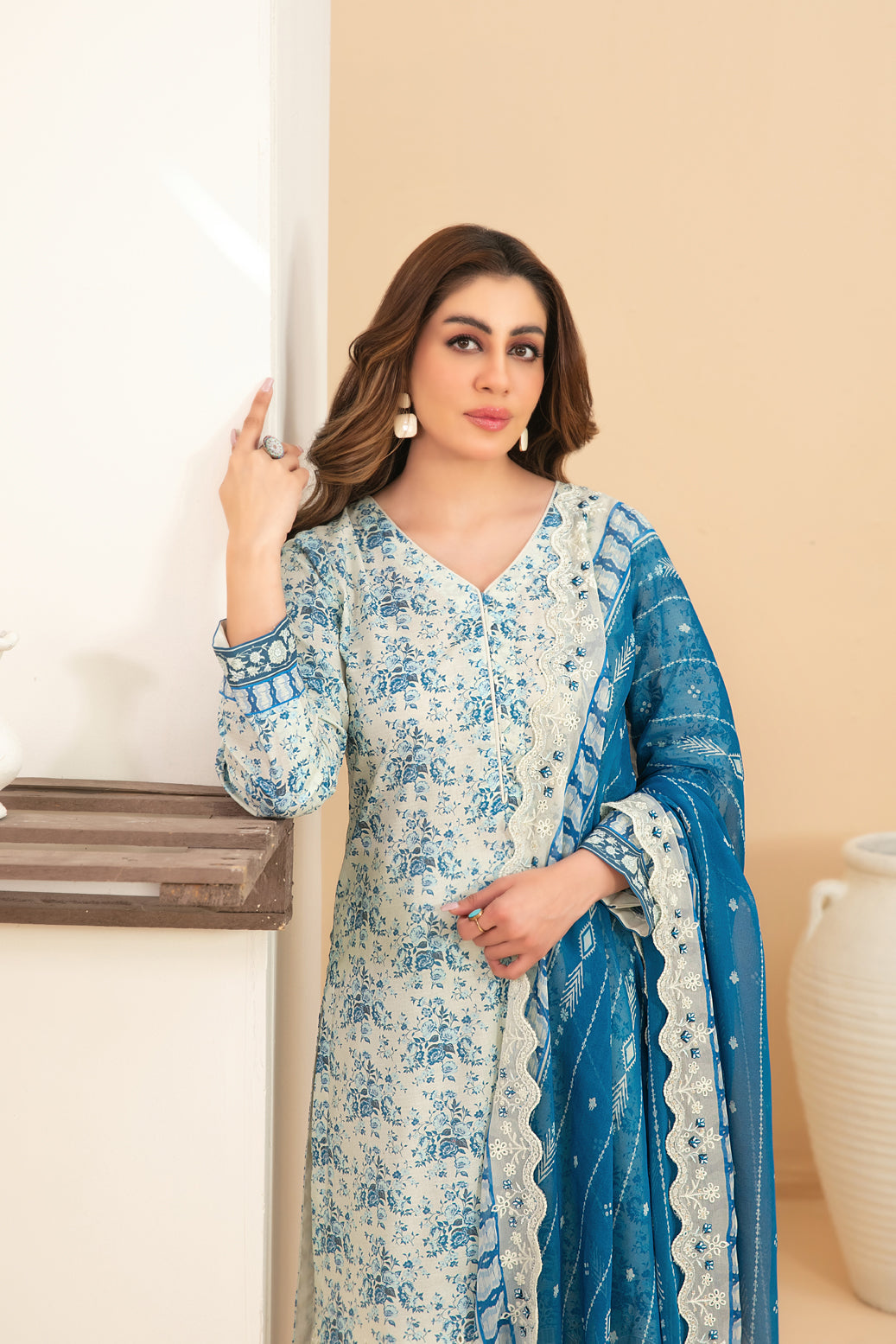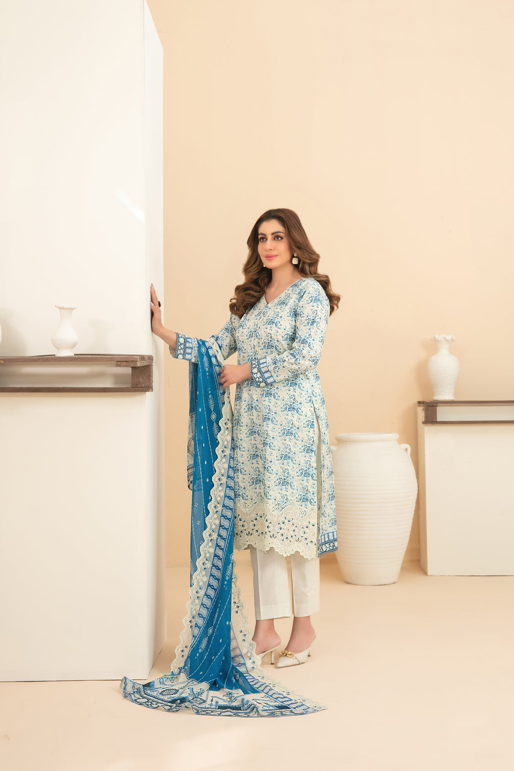 - CutWork Embroidered Digital Printed Chiffon Duppata.