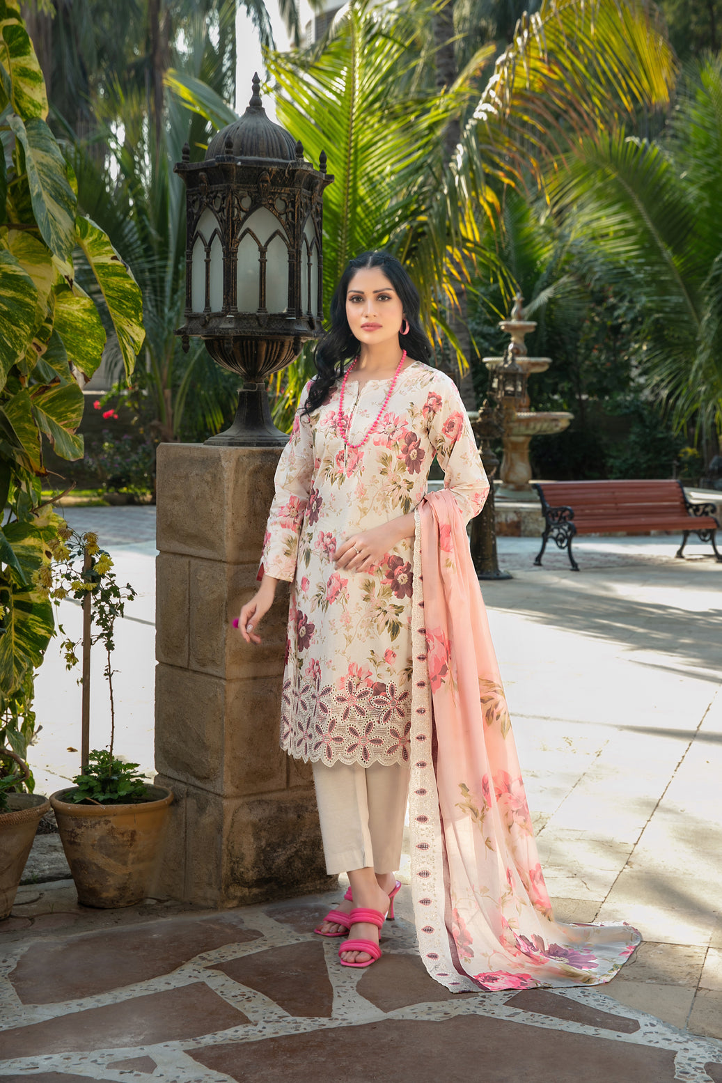 3 Piece Un-Stitched By Tawakkal Fabrics, Attractive & Elegant Embroidered Digital Printed Lawn Collection comes with :