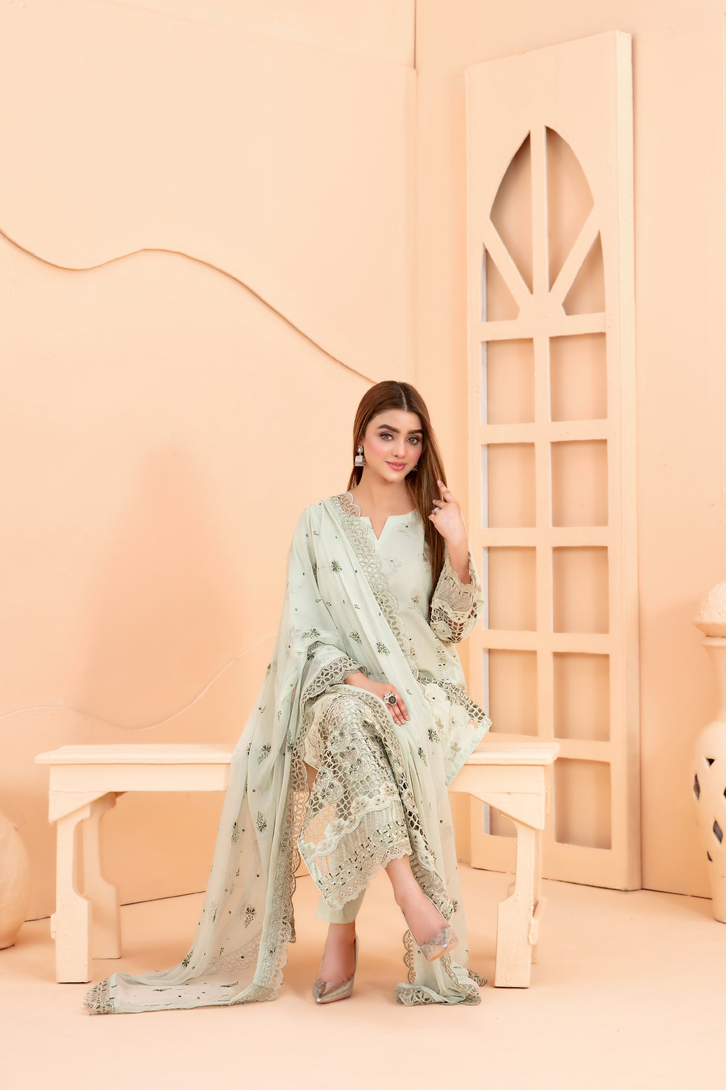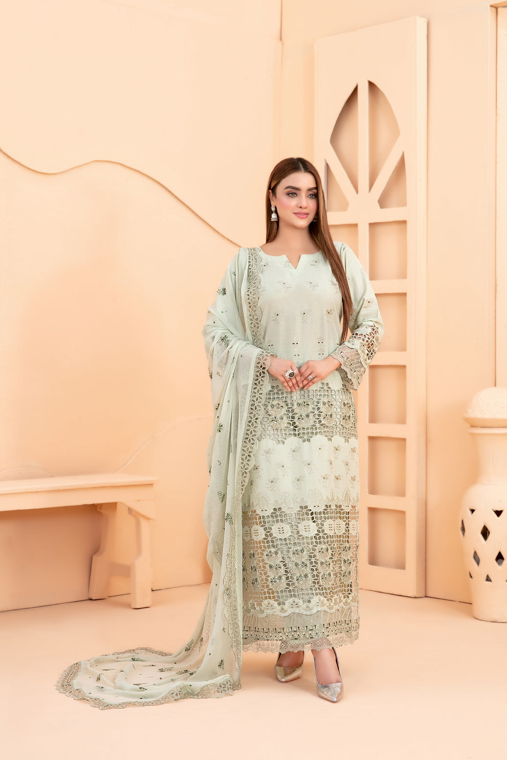 • Un-Stitched Exclusive Laserkari Embroidered Schiffli Lawn Shirt Designs