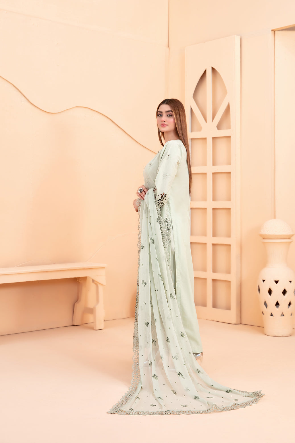 • Embroidered Printed Chiffon Dupatta