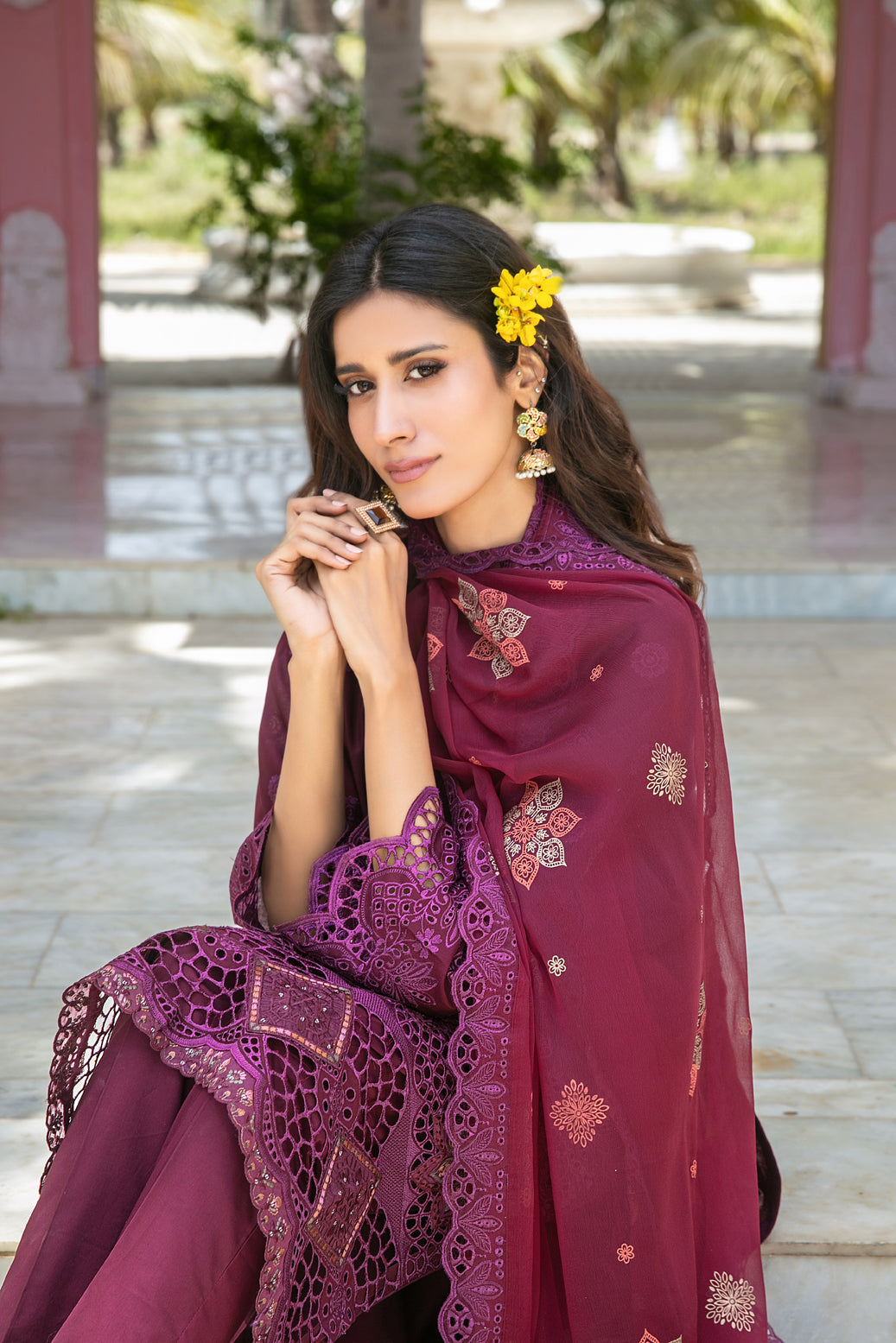 • Embroidered Printed Chiffon Dupatta
