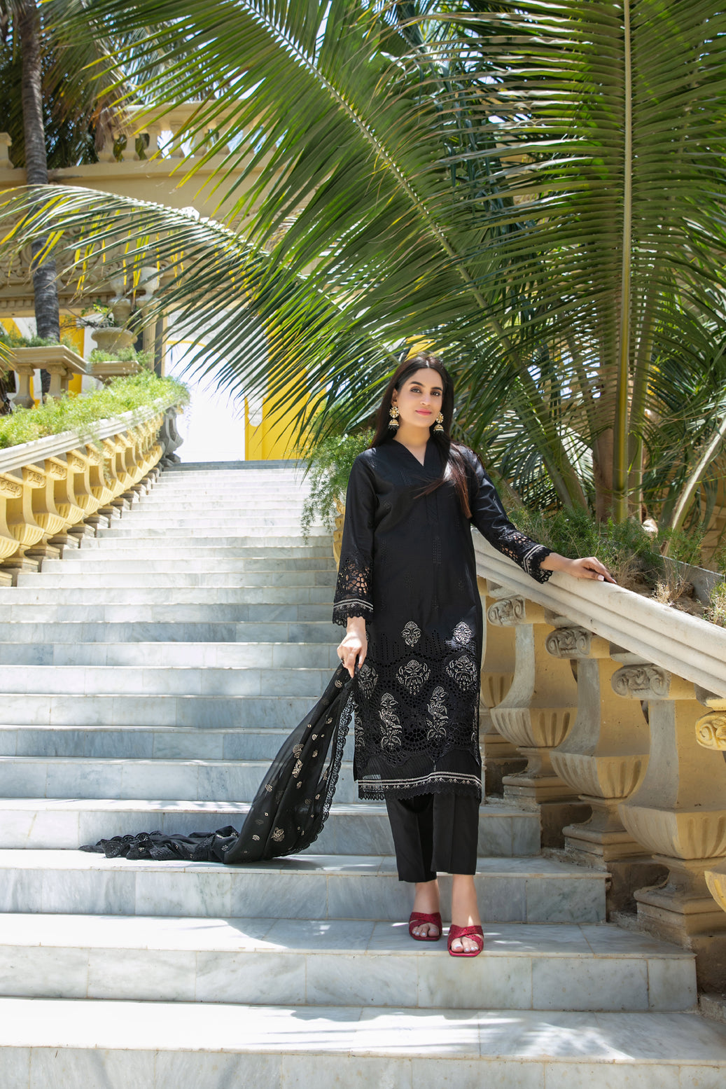 • Un-Stitched Exclusive Laserkari Embroidered Schiffli Lawn Shirt Designs