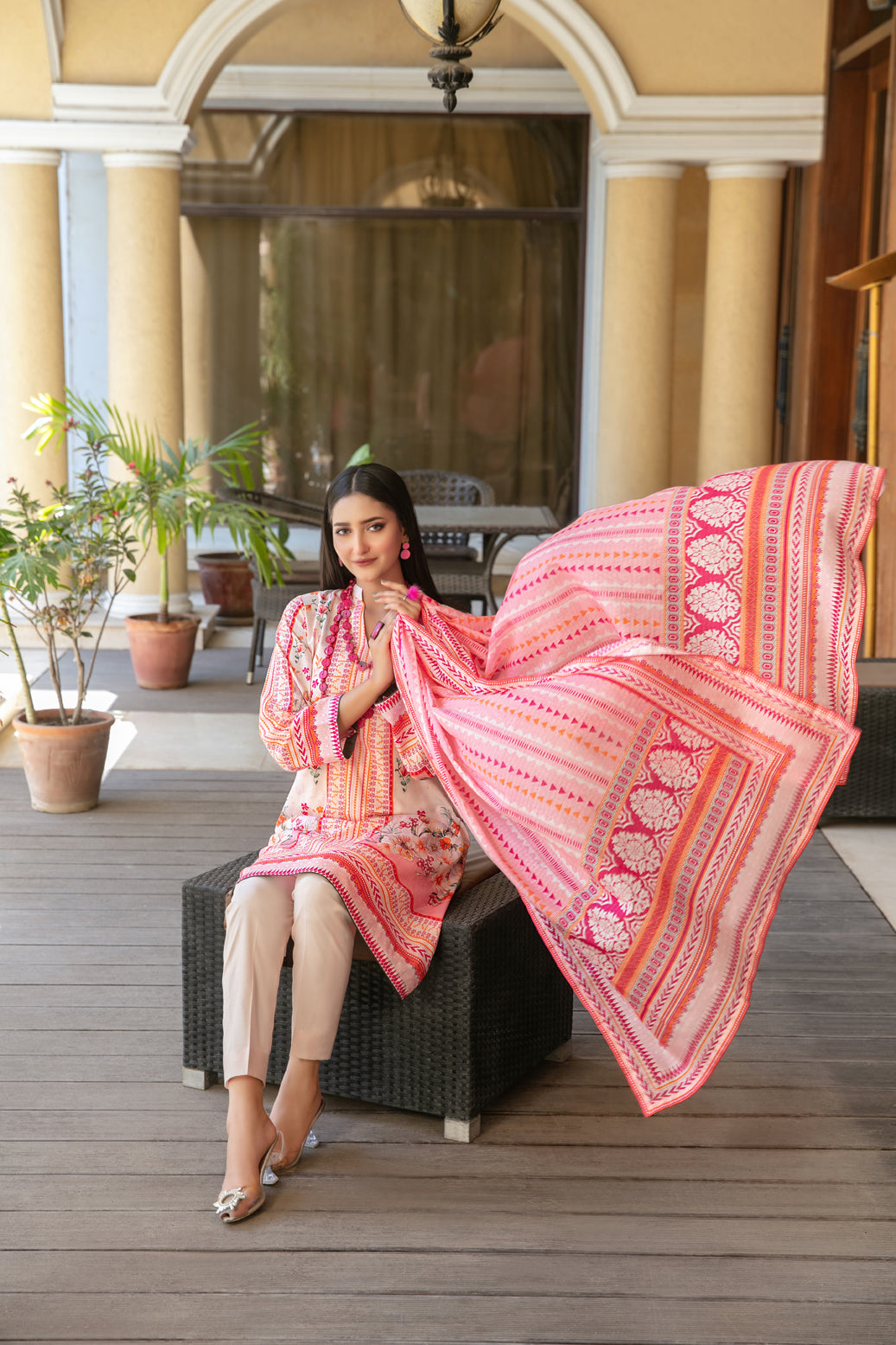 3 Piece Un-Stitched By Tawakkal Fabrics, Attractive & Elegant Printed lawn Collection comes with :