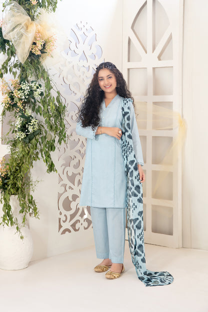 • Stitched Solid Lawn Jacquard Shirt with Lace Detailing & Embellishments