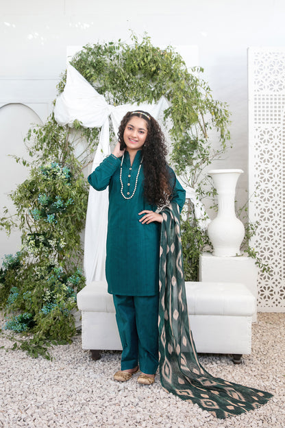 • Stitched Solid Lawn Jacquard Shirt with Lace Detailing & Embellishments