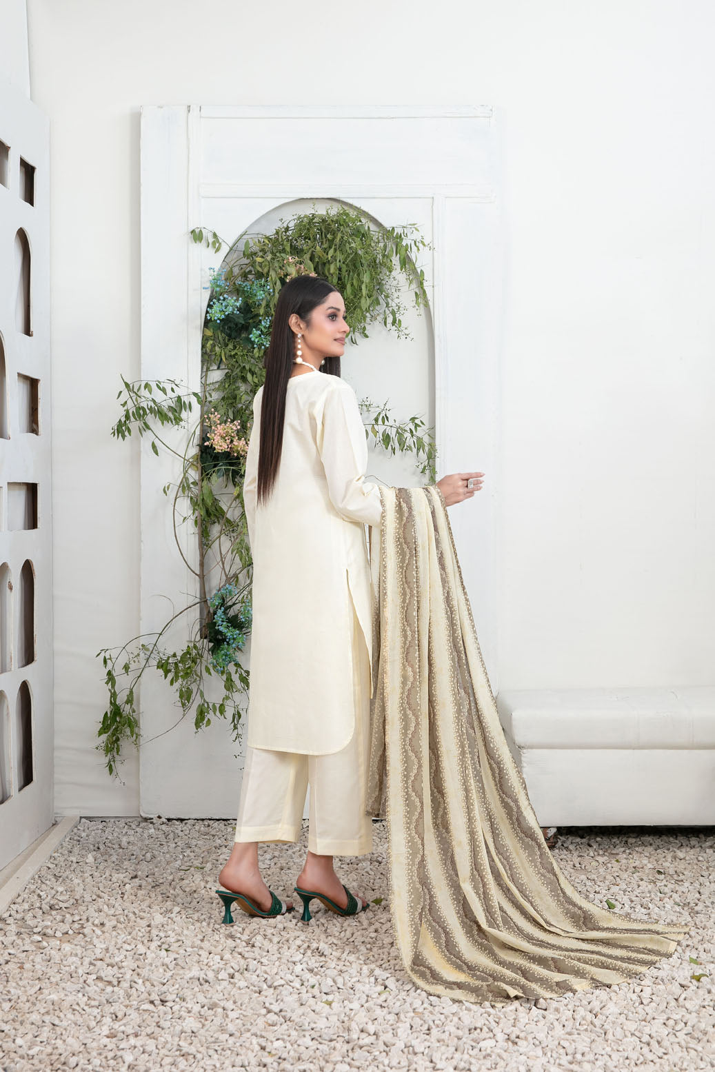 • Stitched Solid Lawn Jacquard Shirt with Lace Detailing & Embellishments
