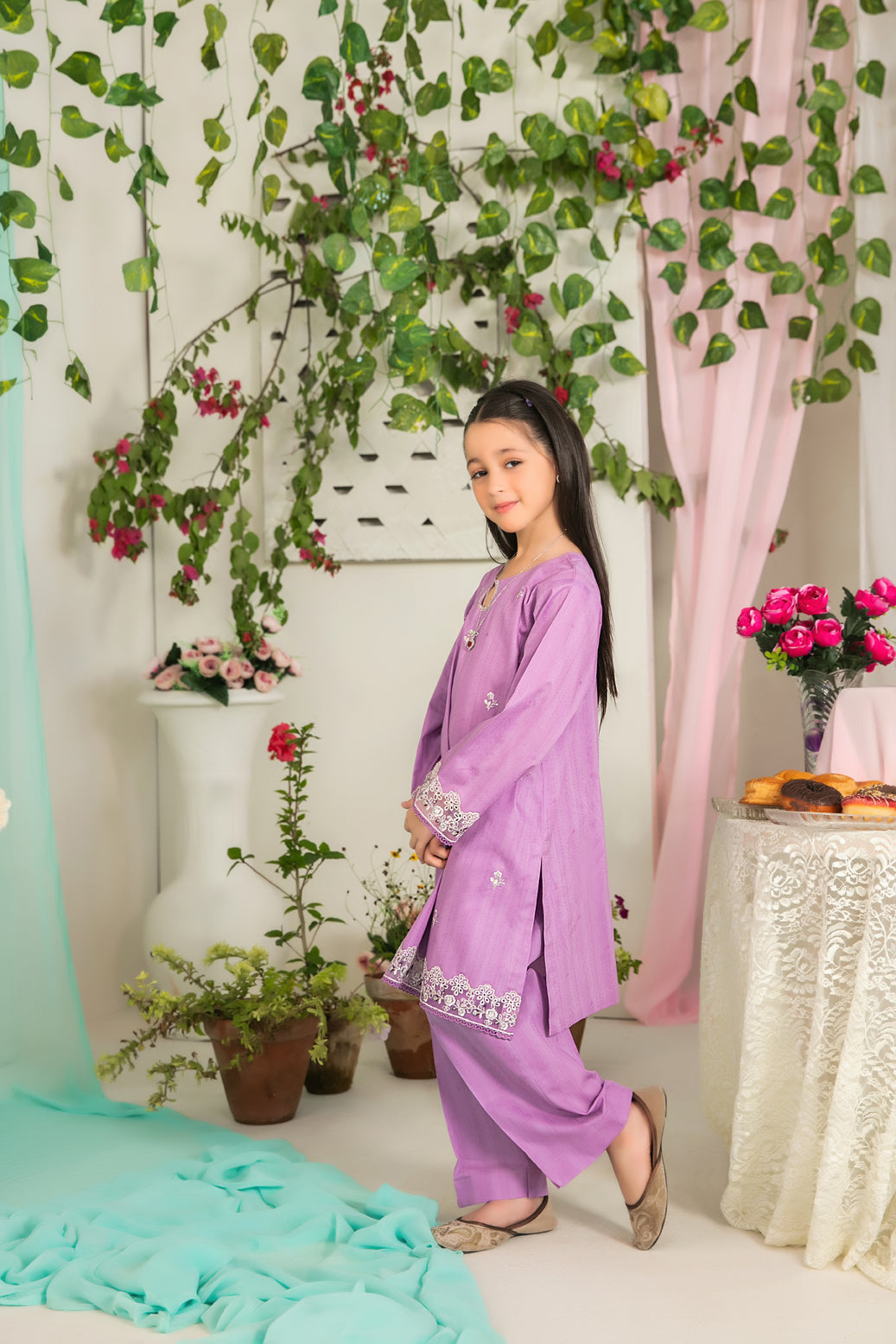 2 Piece Stitched Kid’s Collection By Tawakkal Fabrics, Attractive & Elegant Embroidered Lawn Jacquard Collection comes with: