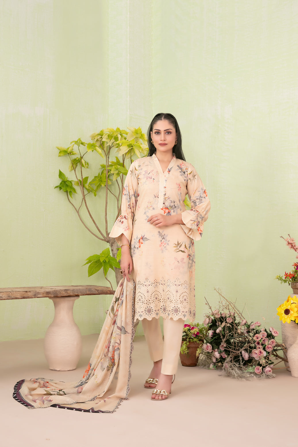 3 Piece Un-Stitched Collection By Tawakkal Fabrics, Attractive & Elegant Lawn Embroidered and Printed Collection comes with: