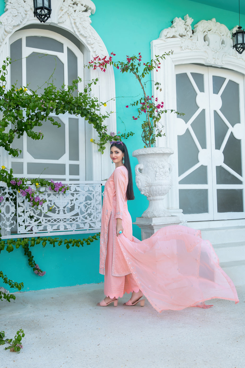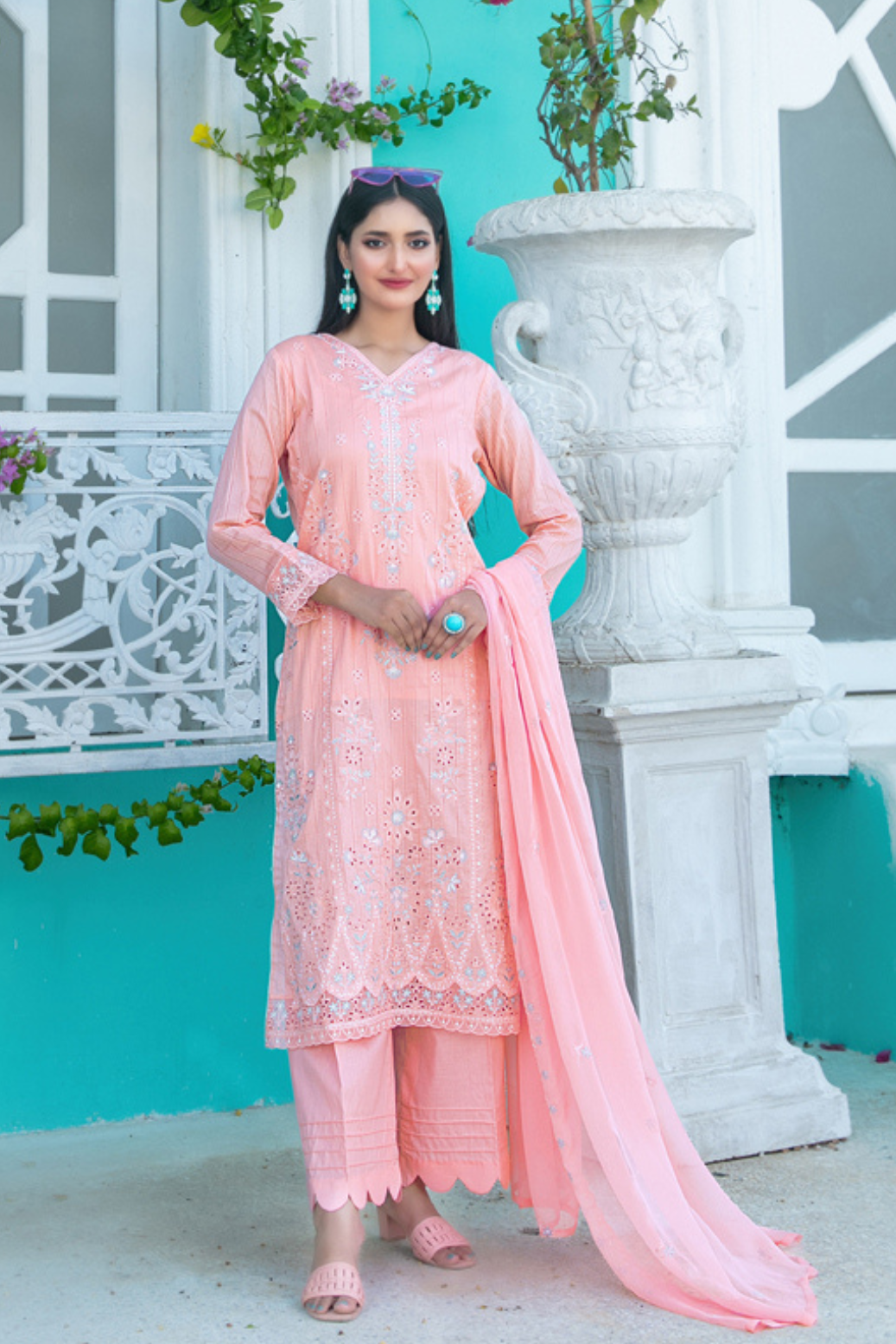 • Cutwork Embroidered Chiffon Dupatta