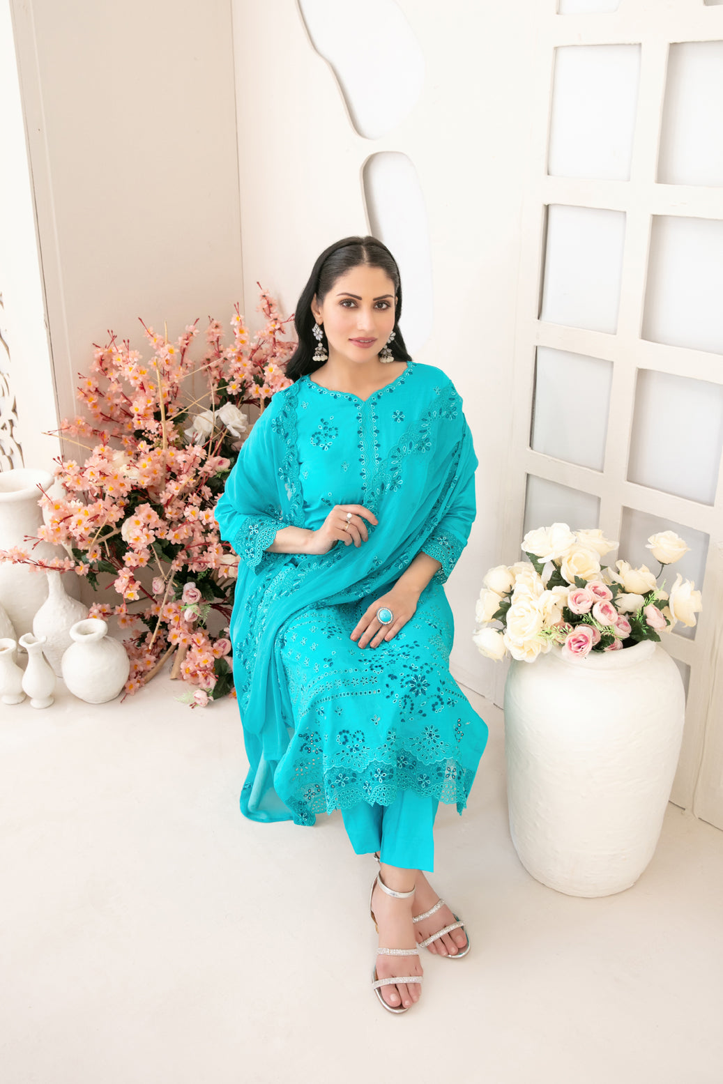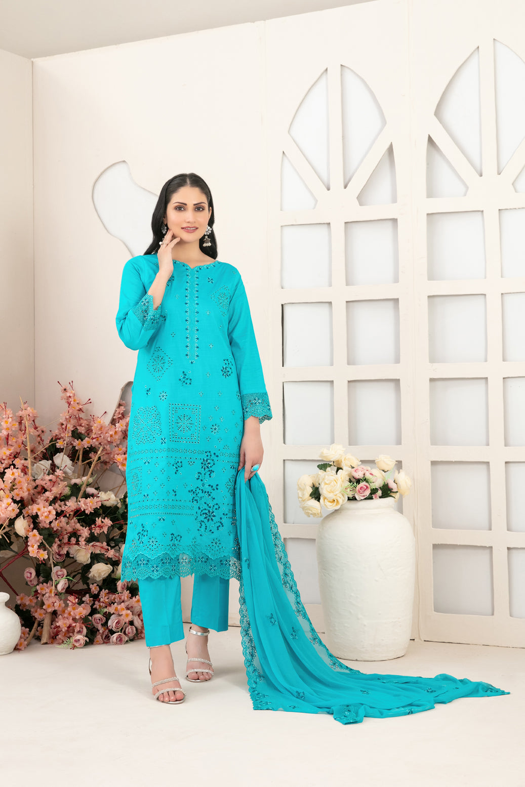 - Exclusive Cutwork Embroidered Chiffon Dupatta