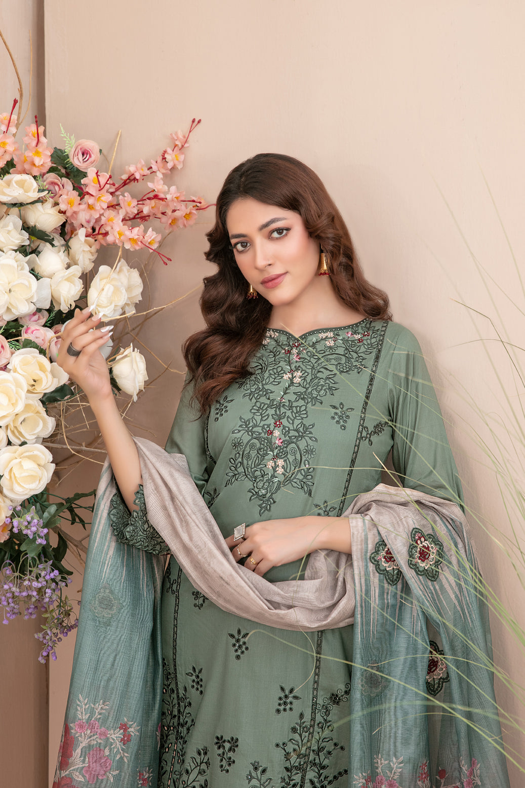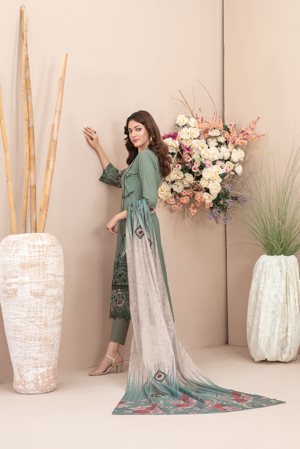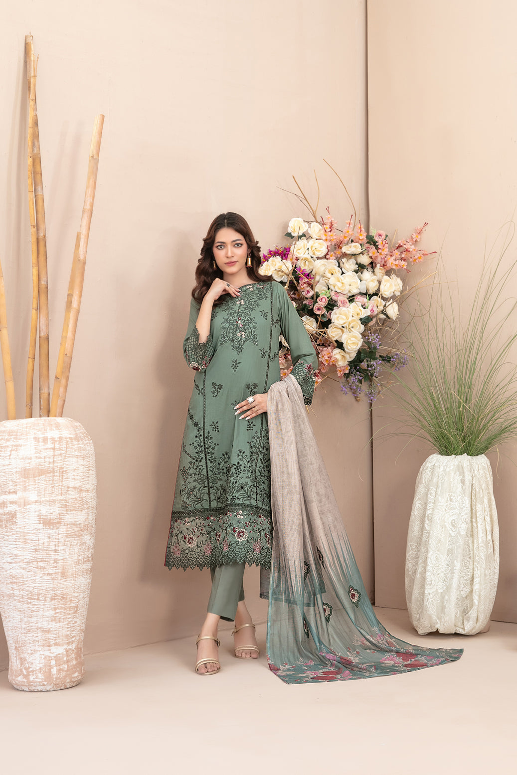 3 Piece Semi-Stitched Collection By Tawakkal Fabrics, Attractive & Elegant Lawn Collection comes with: