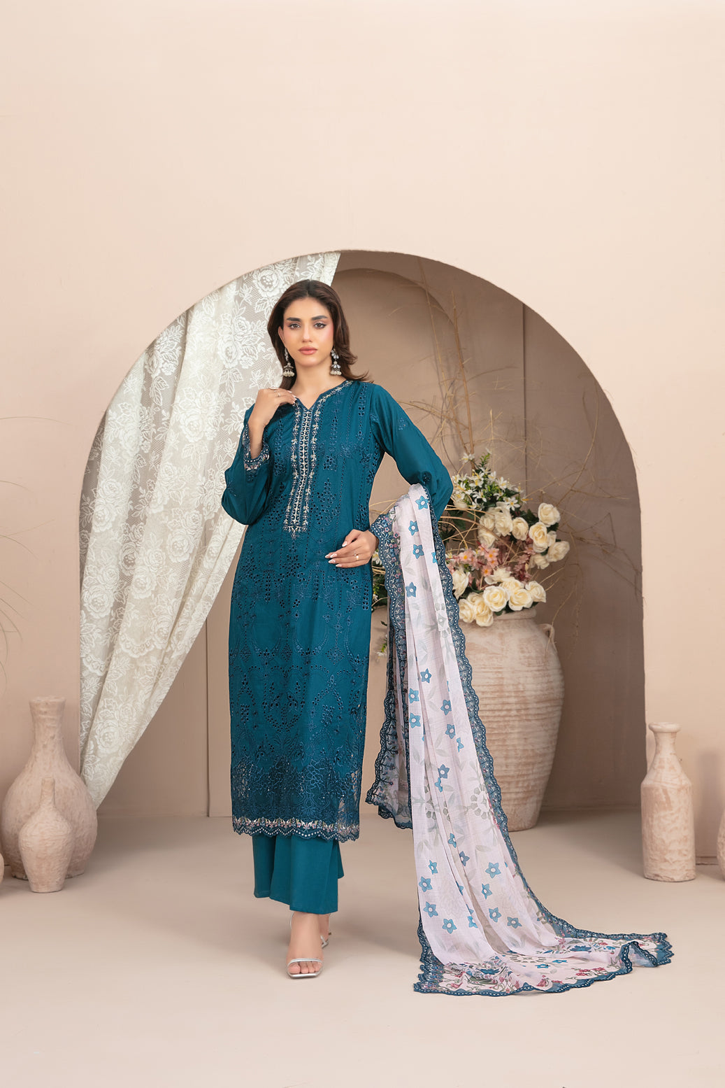 3 Piece Semi-Stitched Collection By Tawakkal Fabrics, Attractive & Elegant Lawn Collection comes with: