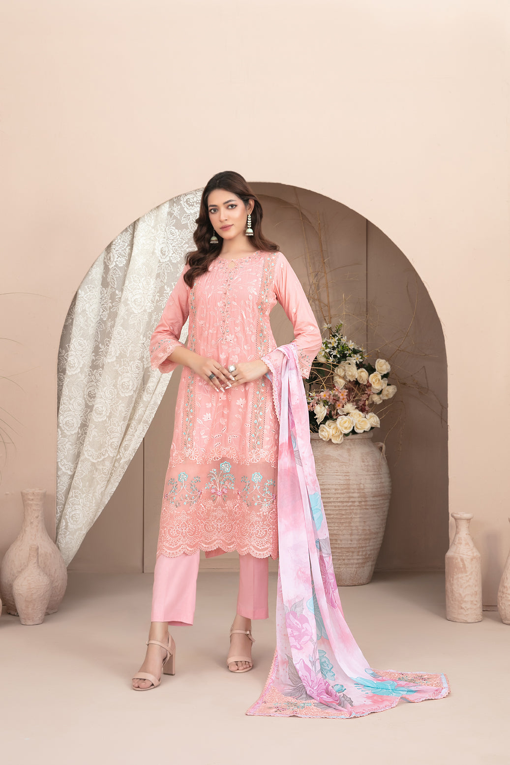 3 Piece Semi-Stitched Collection By Tawakkal Fabrics, Attractive & Elegant Lawn Collection comes with: