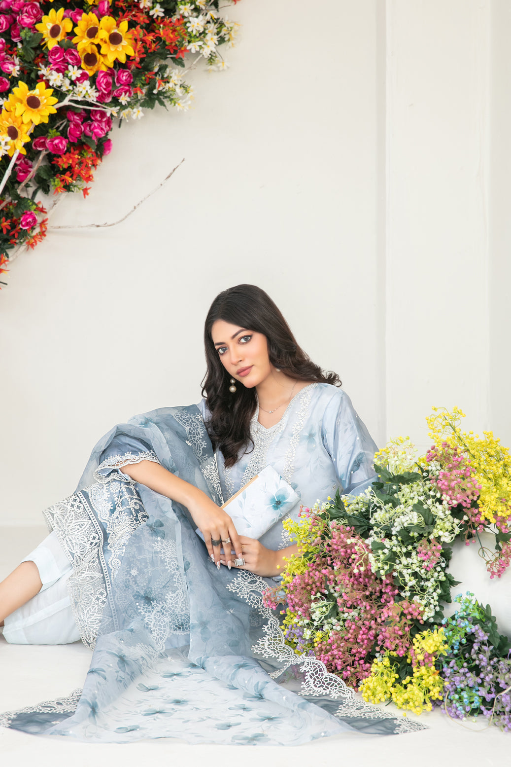 • Exclusive Embroidered Digital Printed Organza Dupatta