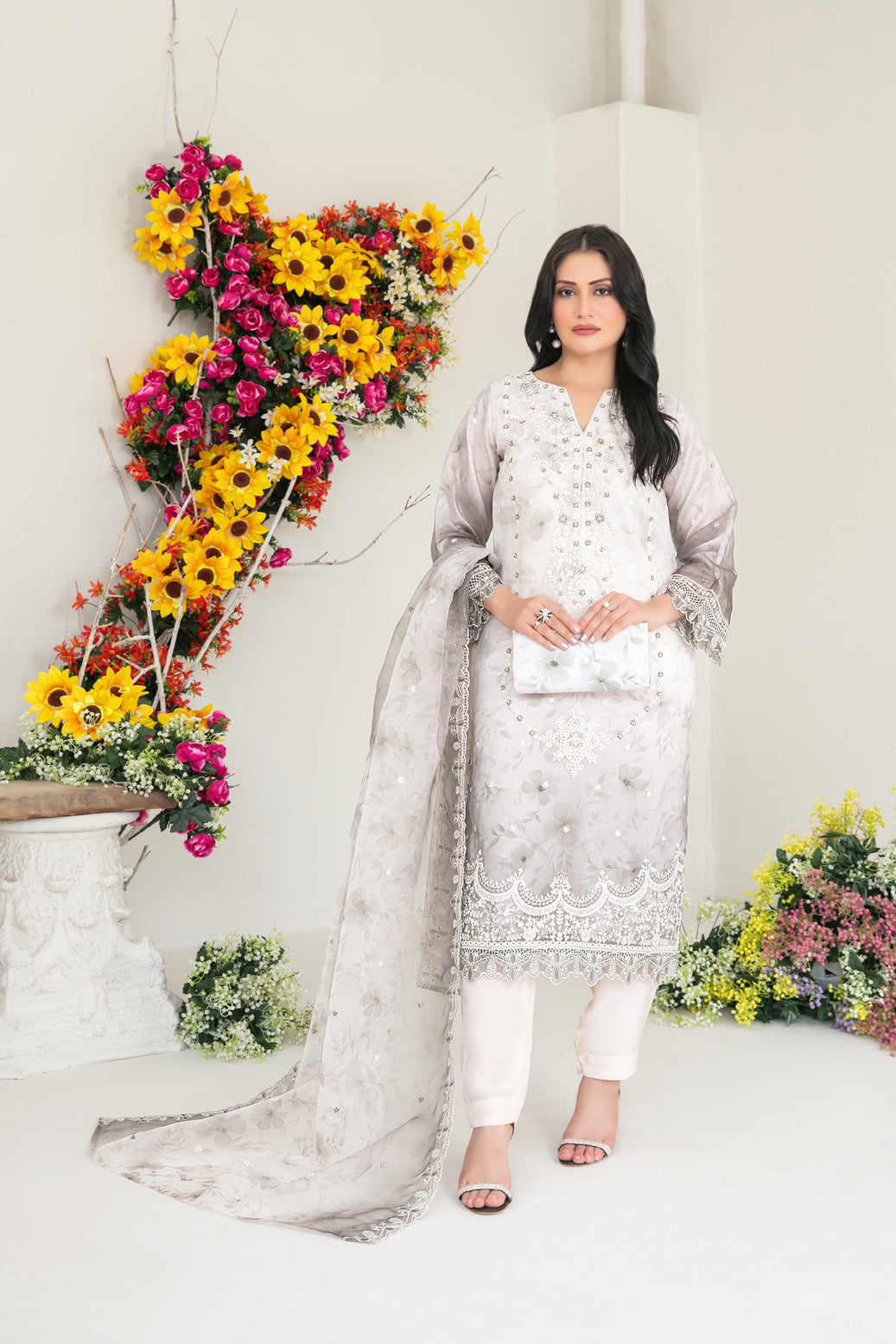 3 Piece Stitched Collection By Tawakkal Fabrics, Attractive & Elegant Organza Collection comes with: