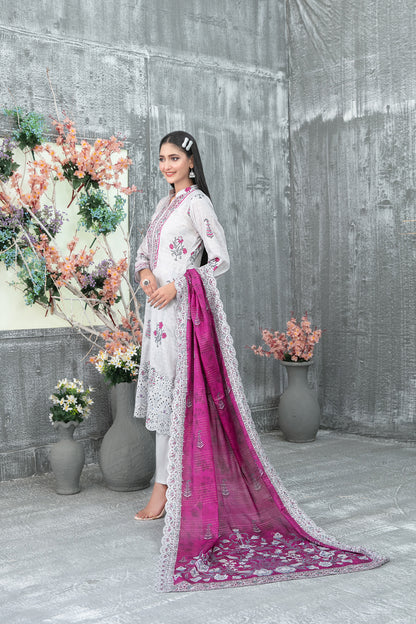 - Cutwork Embroidered Digital Printed Slub Lawn Dupatta