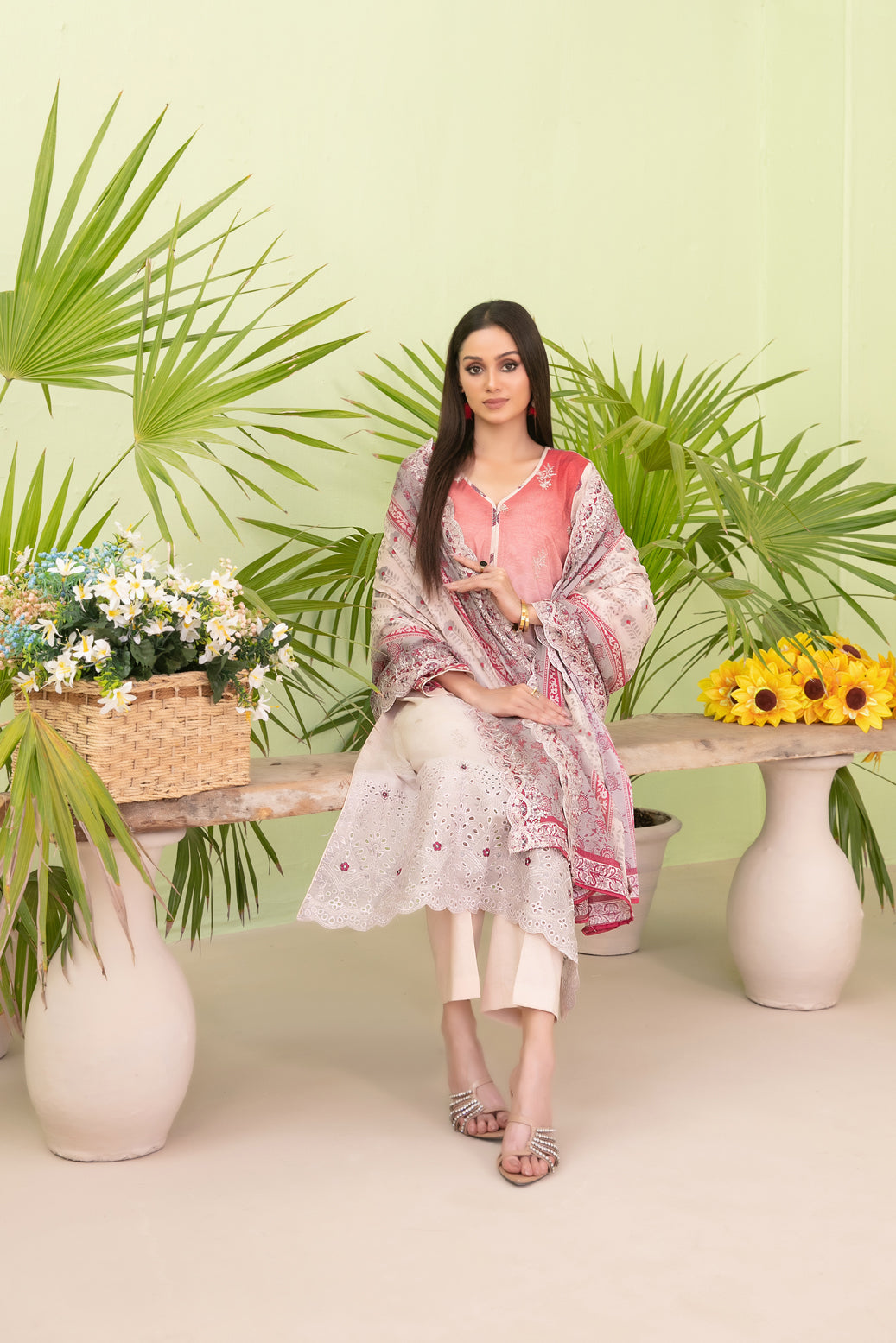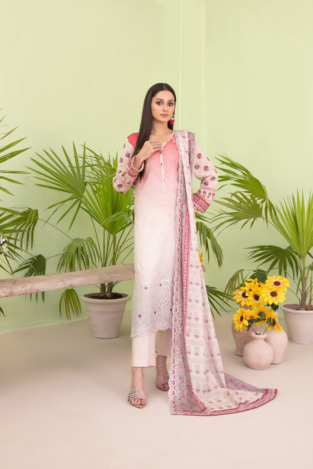 - Cutwork Embroidered Digital Printed Dupatta