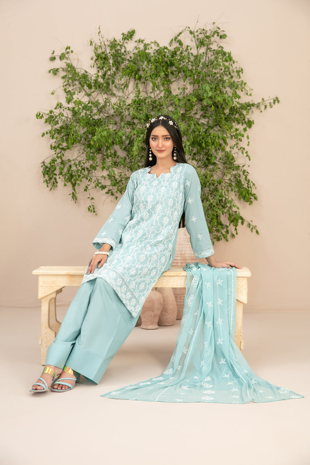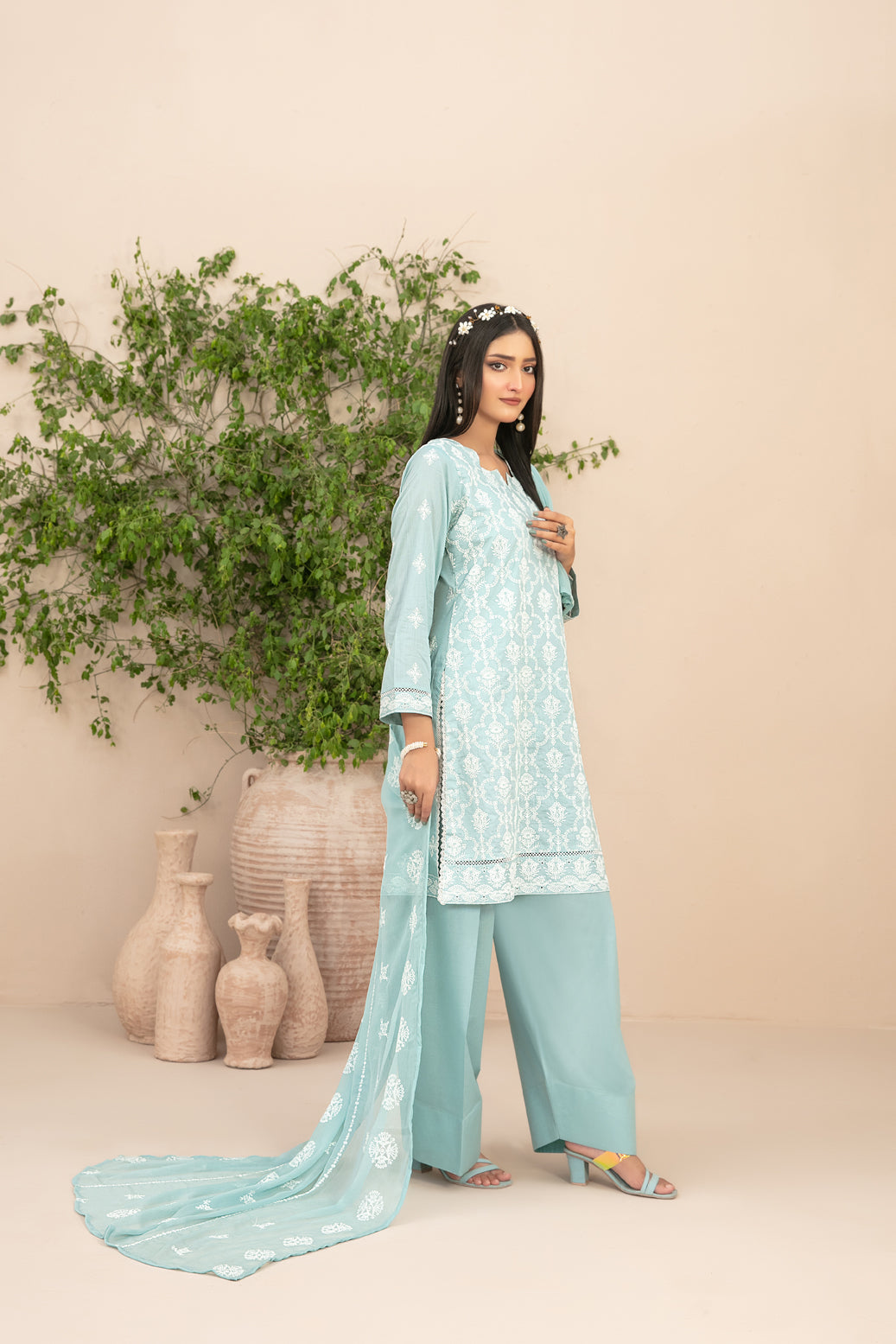 • Embroidered Chiffon Dupatta