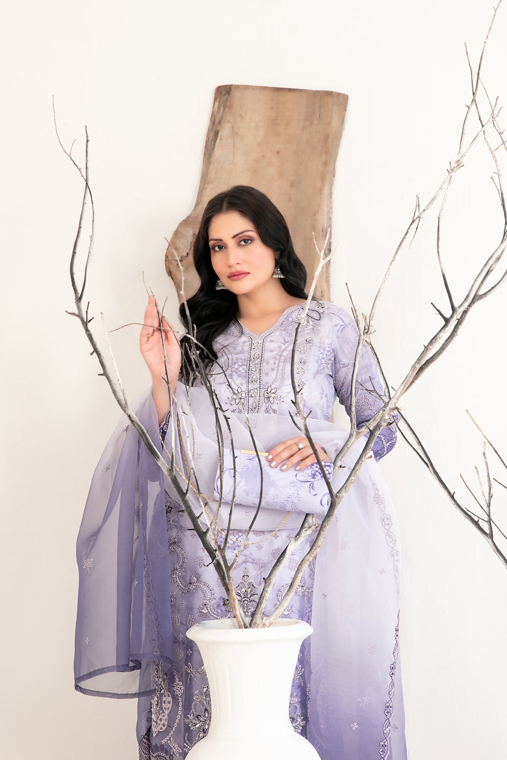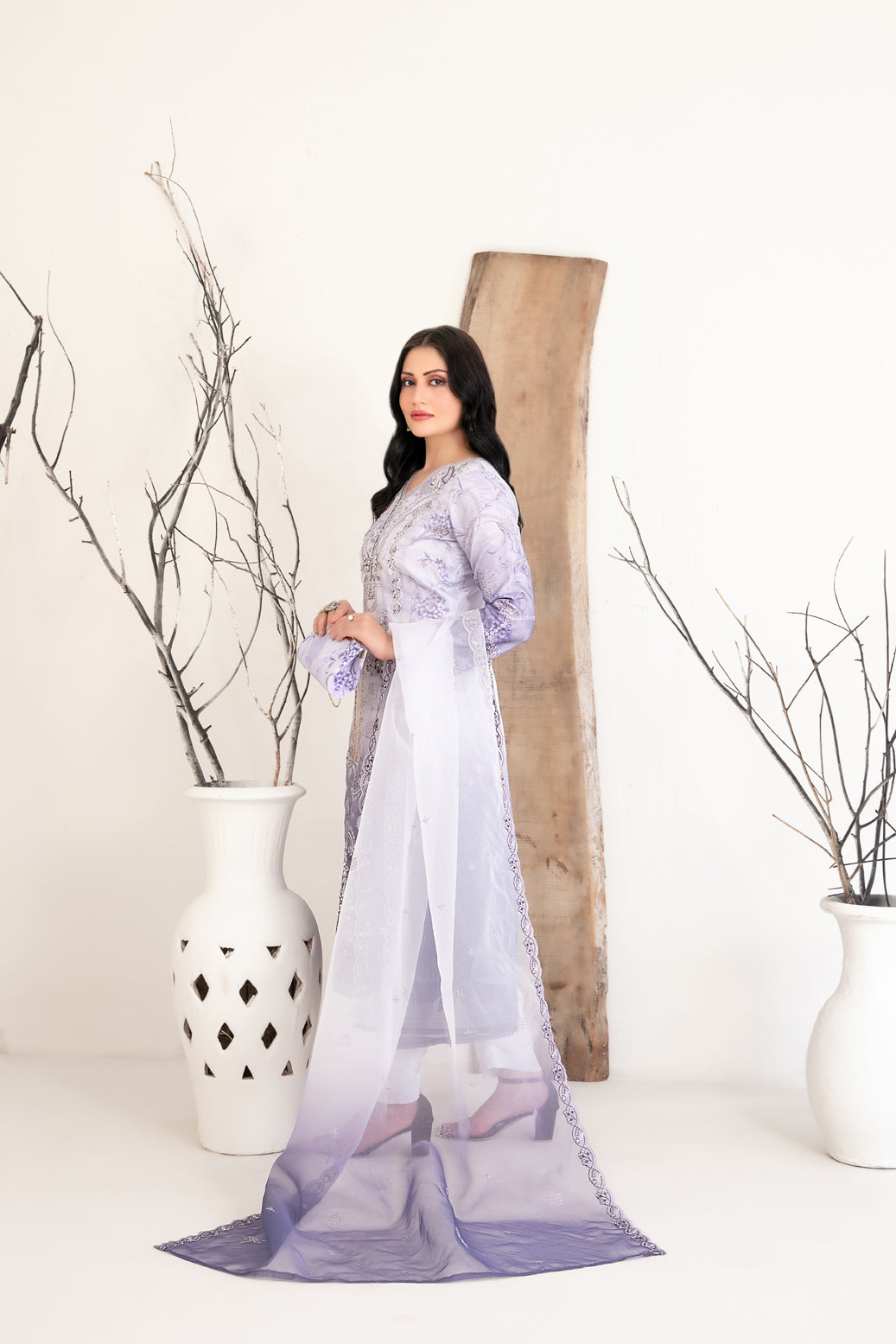 3 Piece Semi-Stiched Collection By Tawakkal Fabrics, Attractive & Elegant Organza Collection comes with: