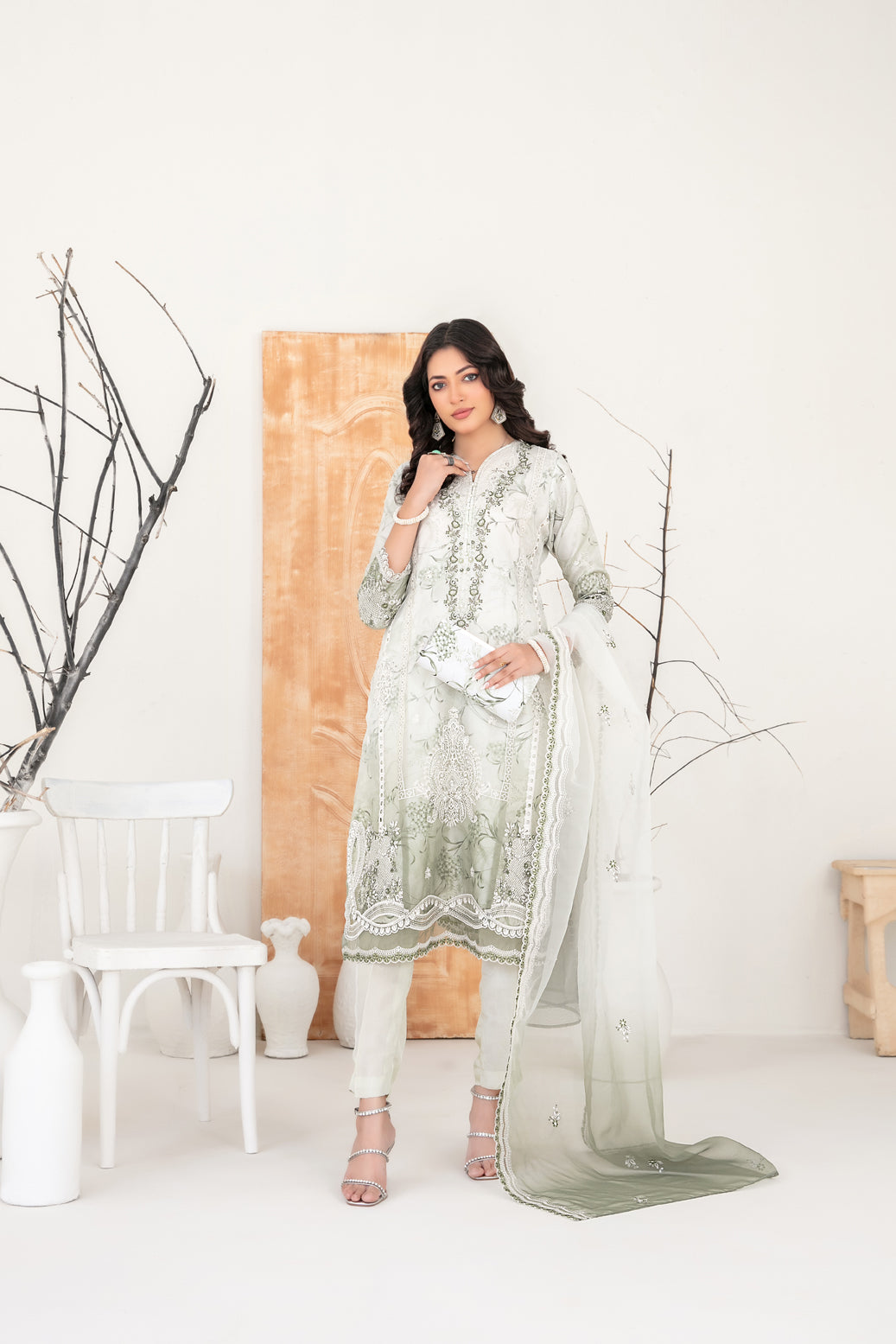 - Exclusive Fancy Embroidered Organza Dupatta