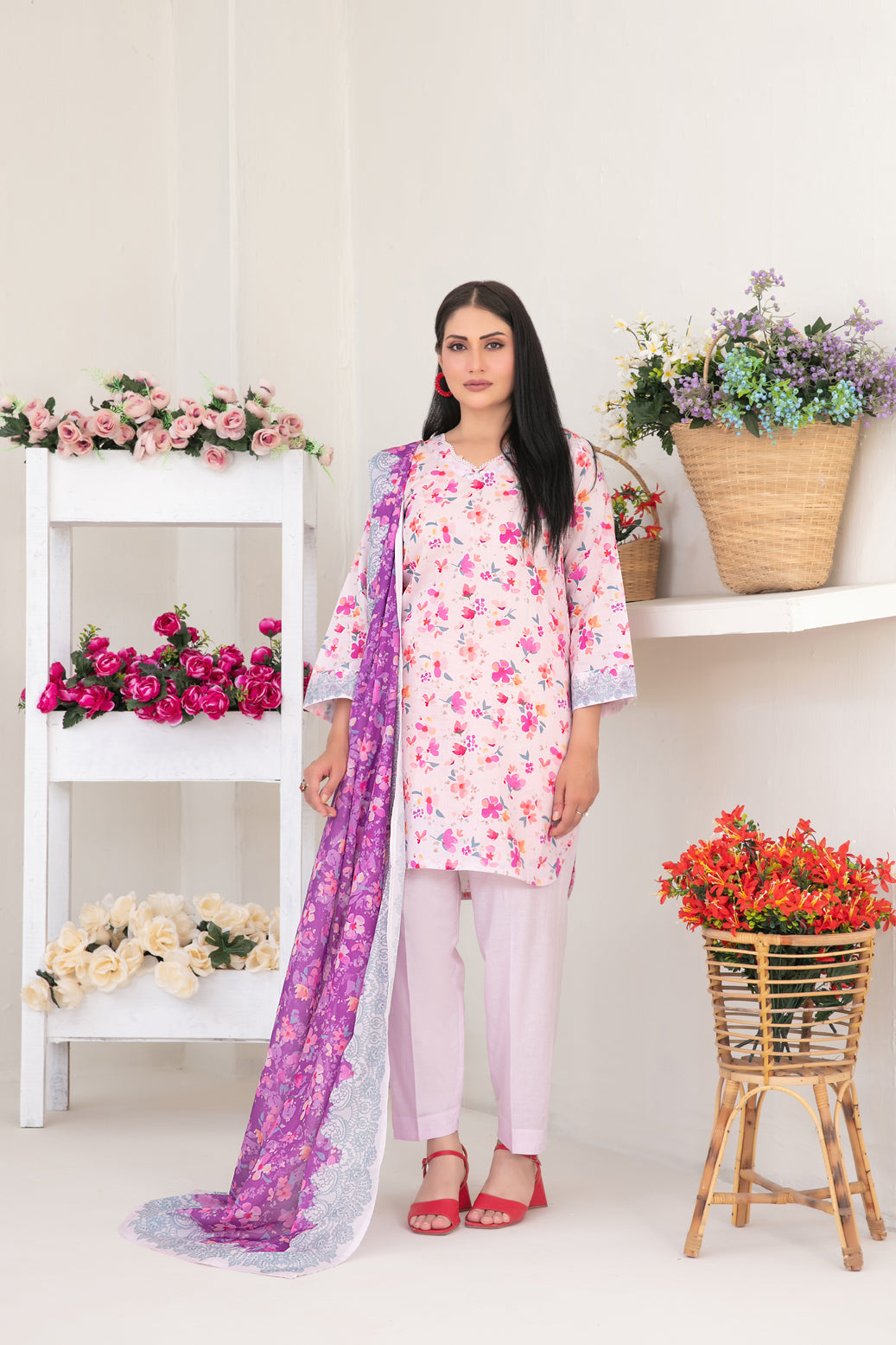 3 Piece Stitched Collection By Tawakkal Fabrics, Attractive & Elegant Lawn Collection comes with: