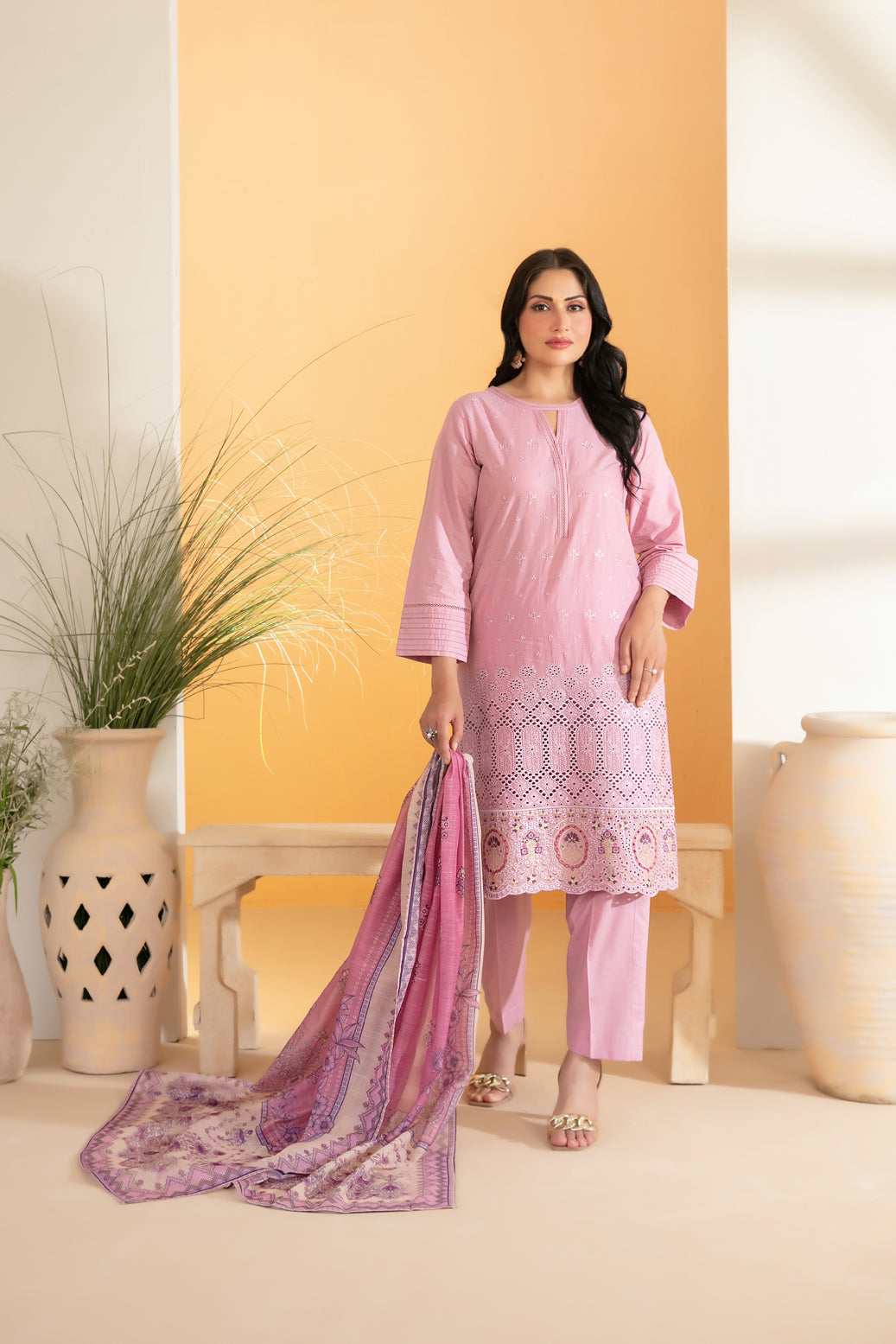 • Stitched Embroidered Schiffli Lawn Shirt Designs