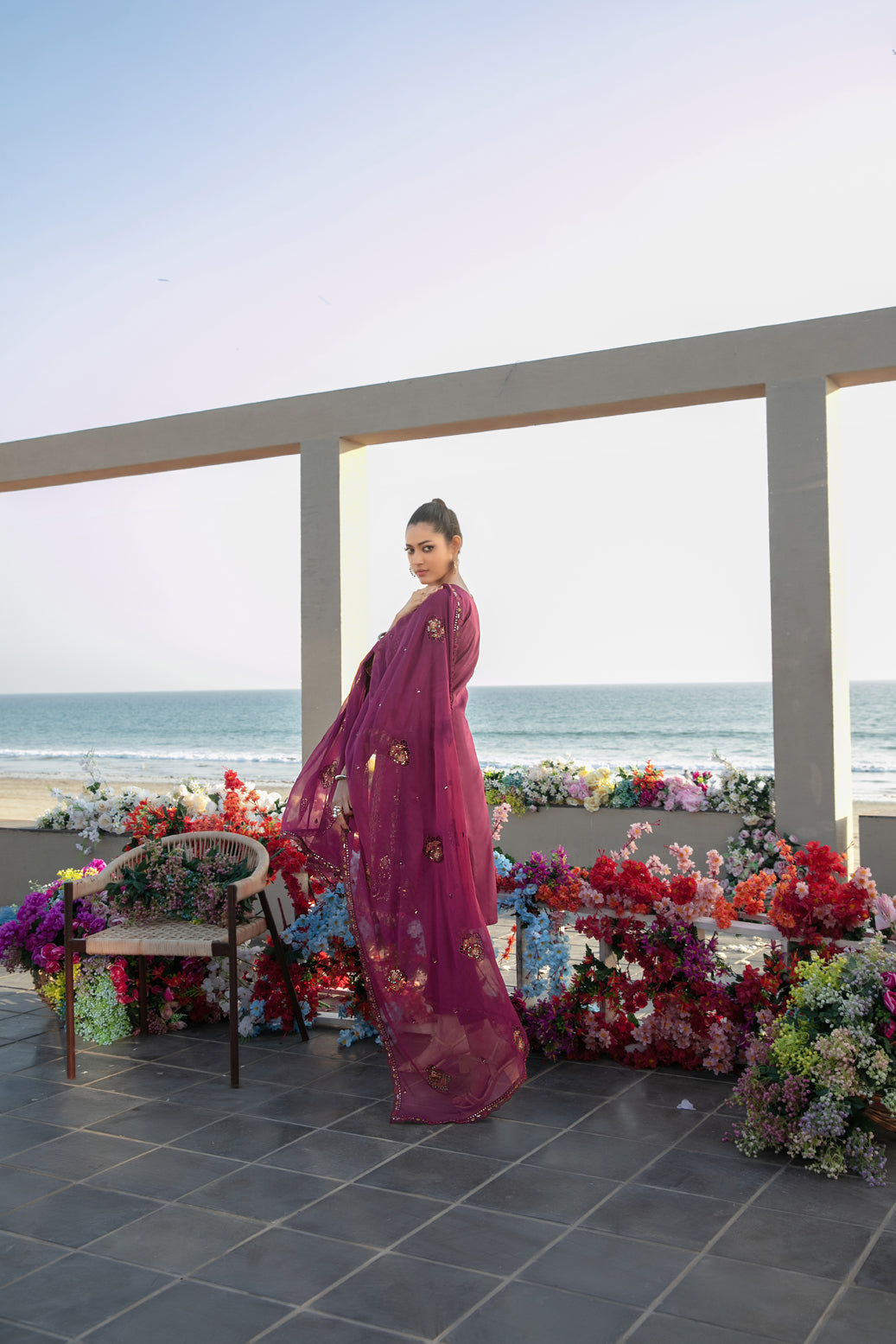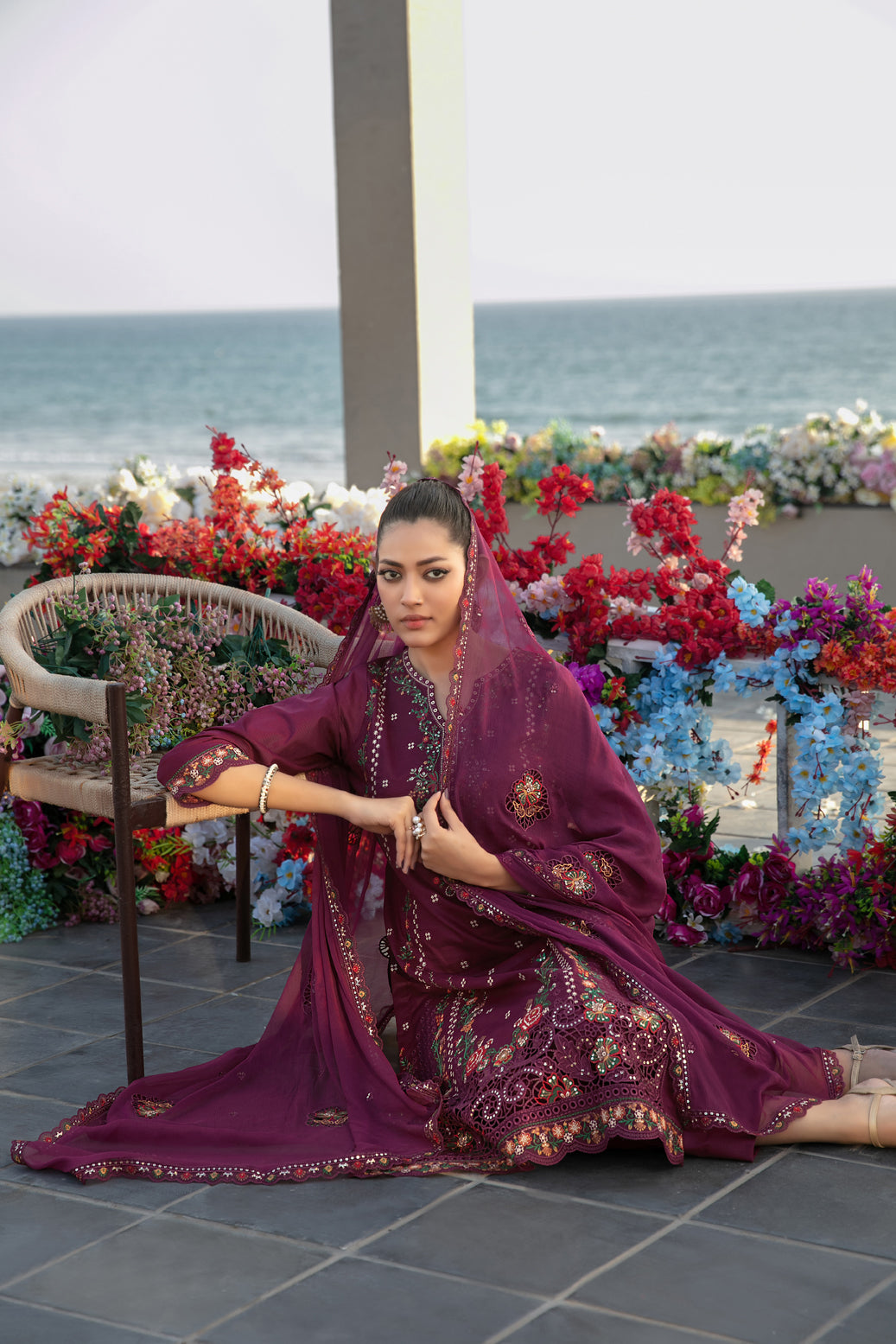 - Embroidered Chiffon Dupatta