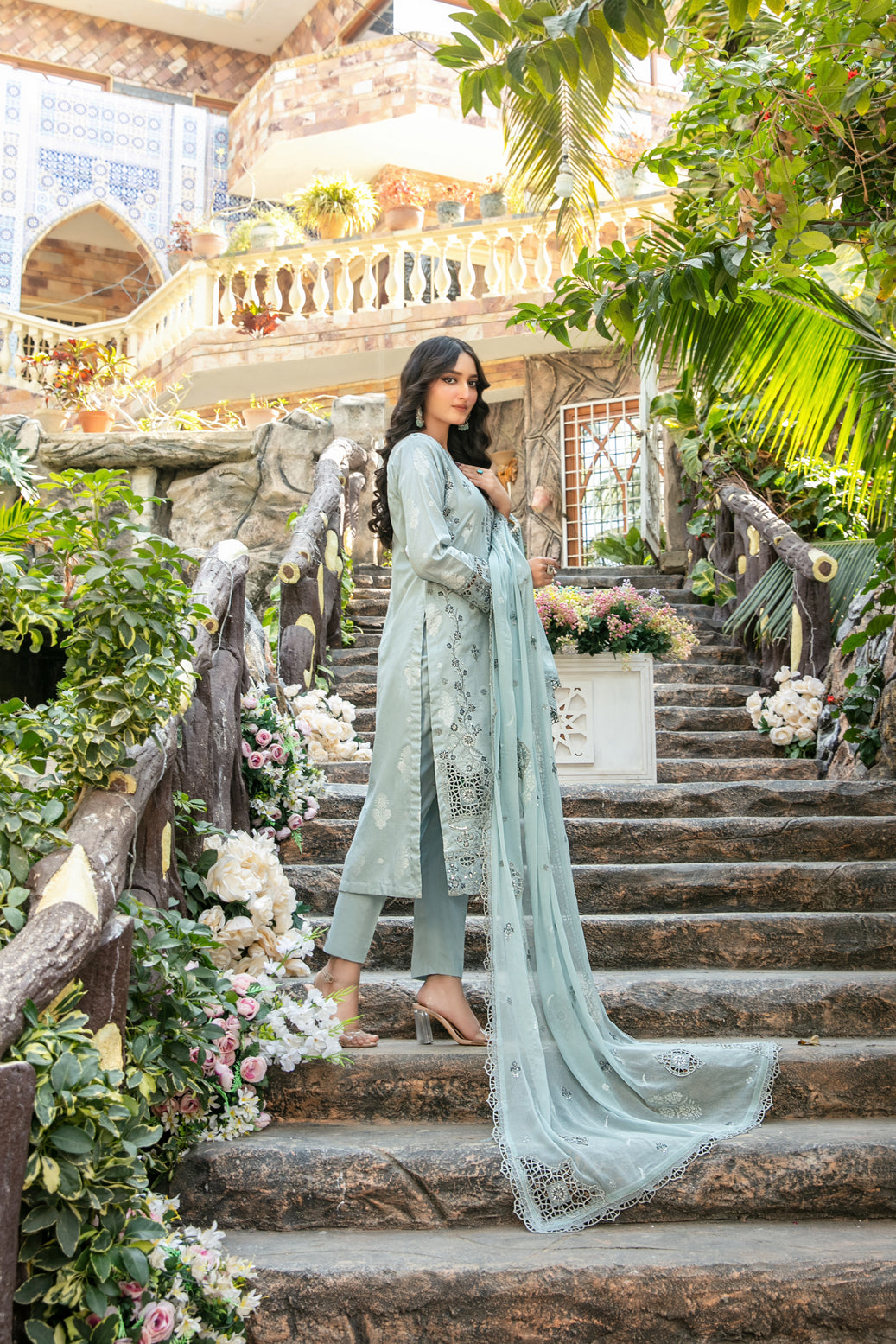 - Embroidered Chiffon Printed Dupatta