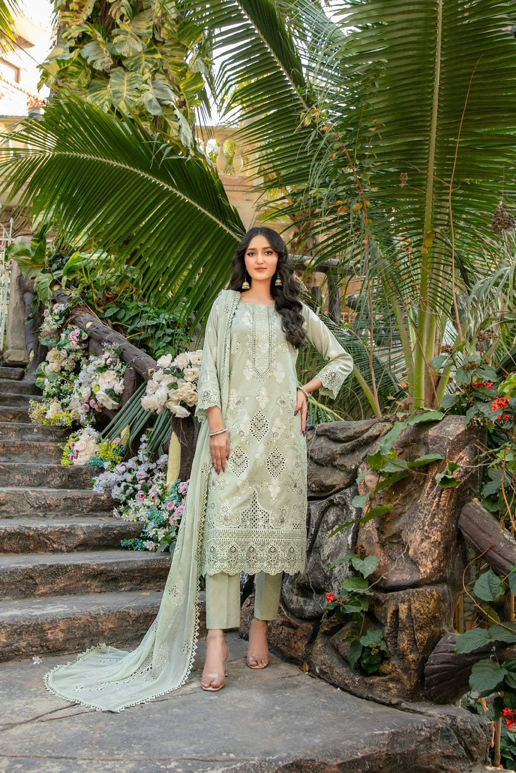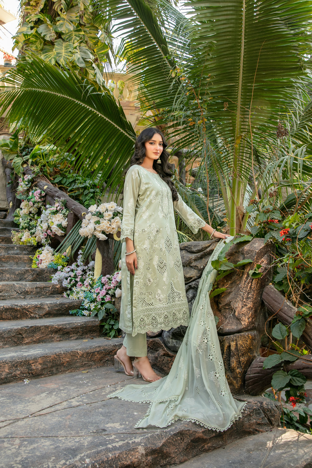 • Embroidered Chiffon Printed Dupatta