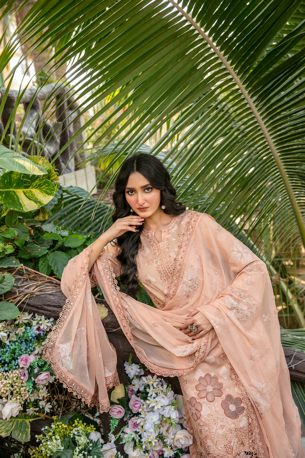 • Embroidered Chiffon Printed Dupatta