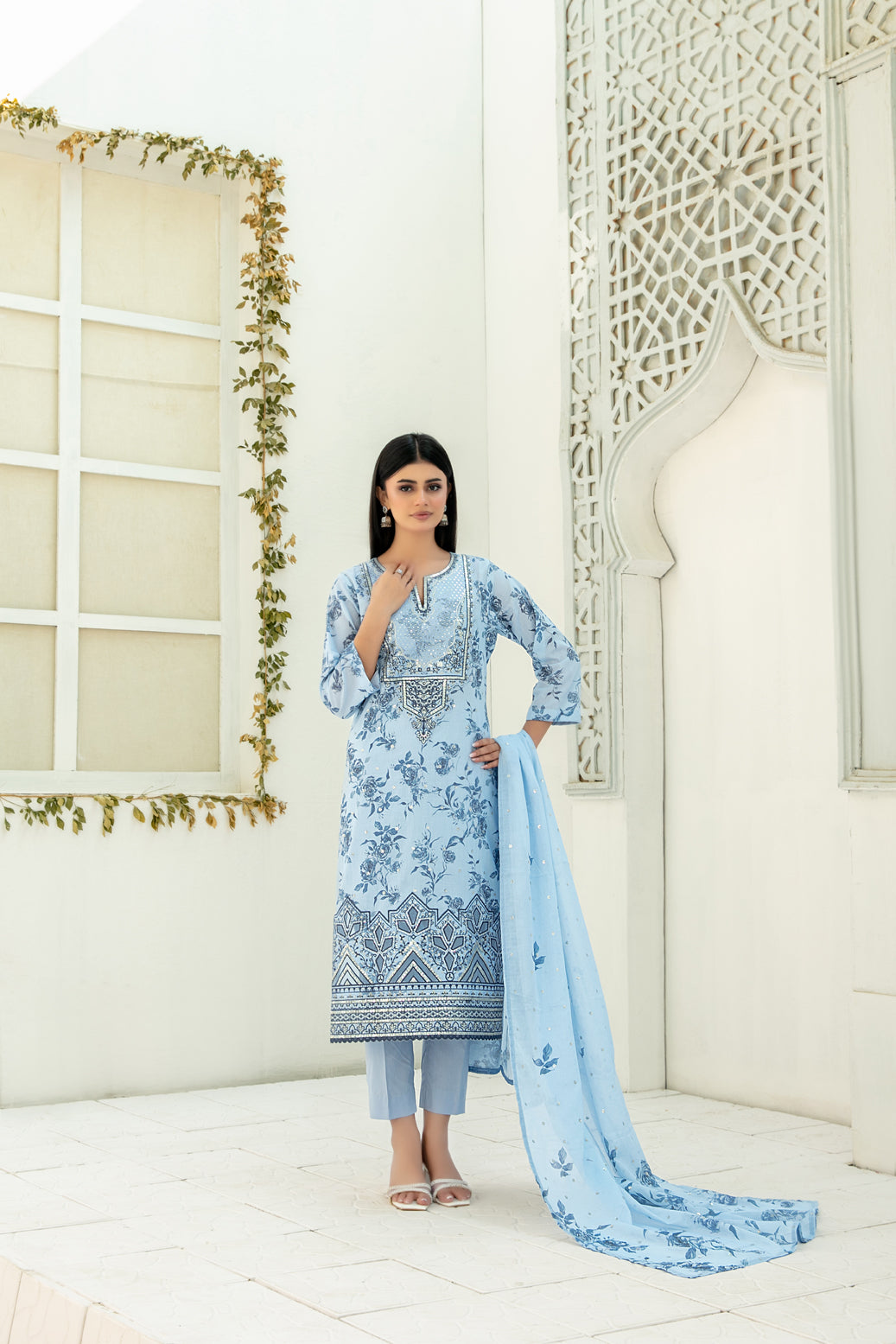 • Embroidered Digital Printed Lawn Dupatta