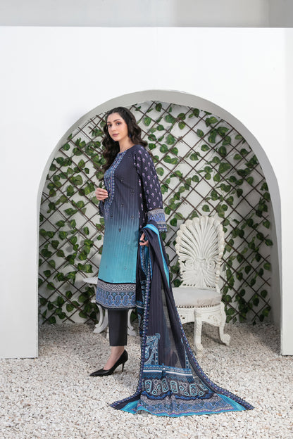 • Stitched Embroidered Digital Printed Lawn Shirt Designs with Embellishments