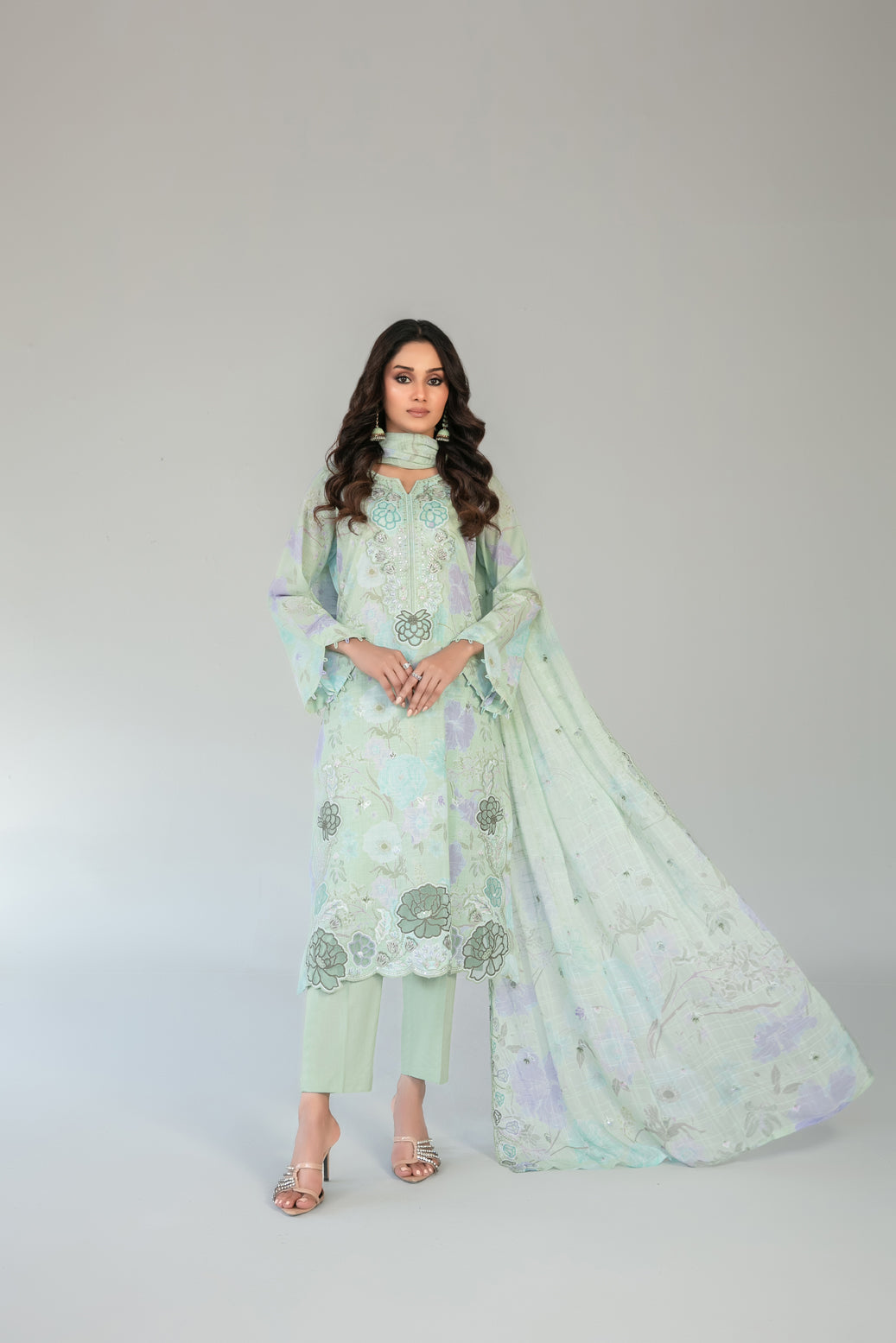 • Un-Stitched Embroidered Digital Printed Cross Slub Lawn Shirt Designs