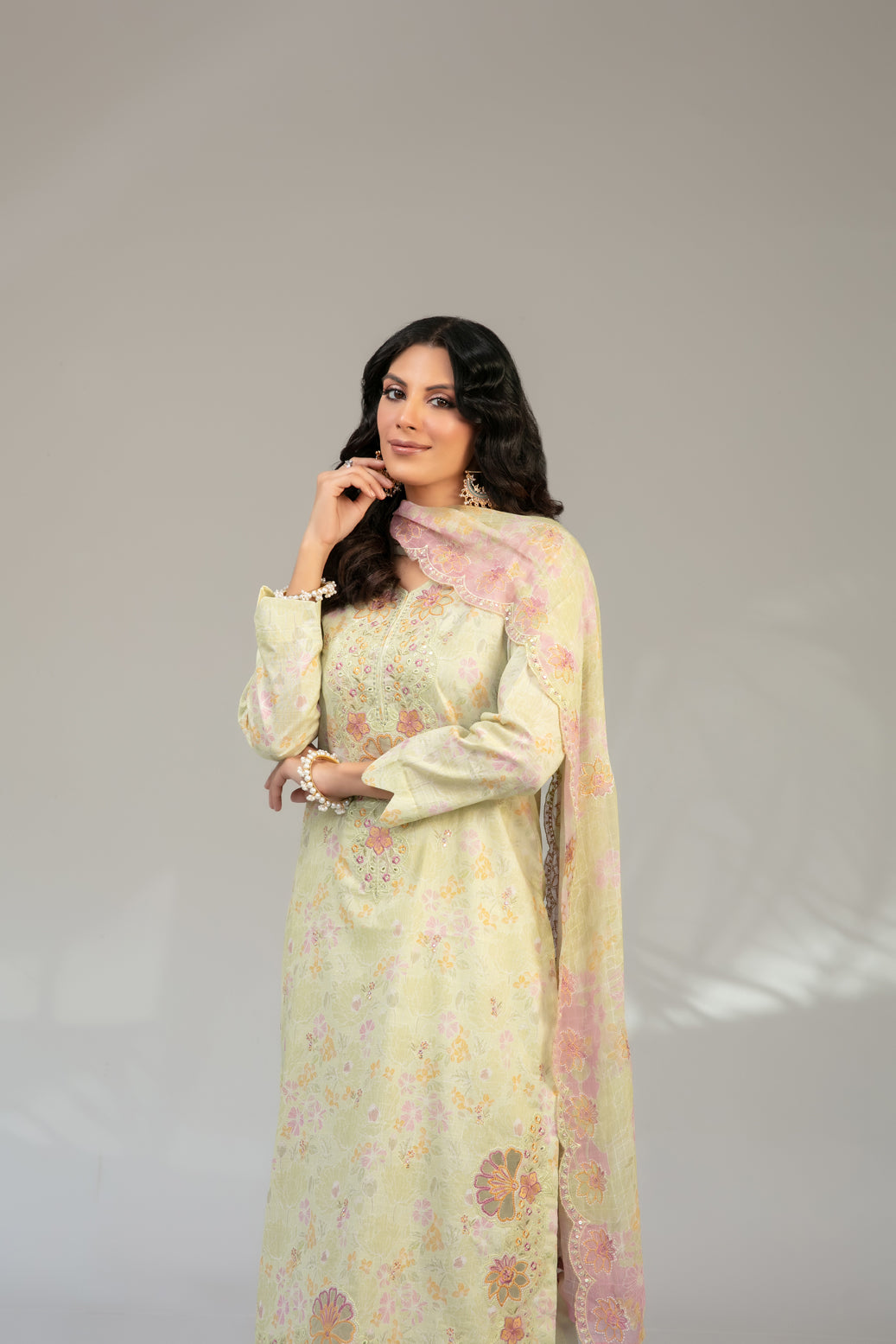 • Cutwork Embroidered Digital Printed Chiffon Dupatta
