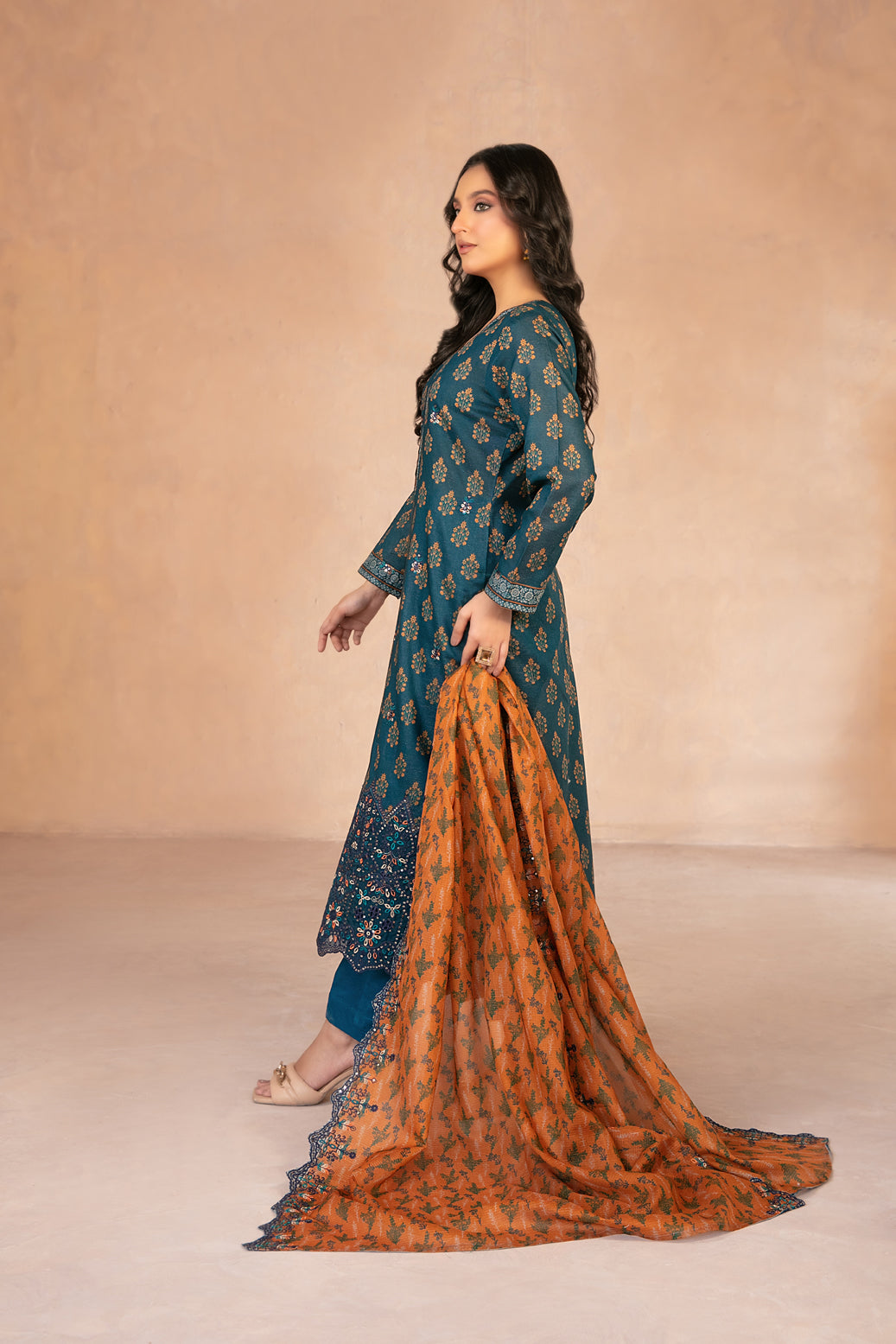 • Cutwork Embroidered Digital Printed Chamki Lawn Dupatta