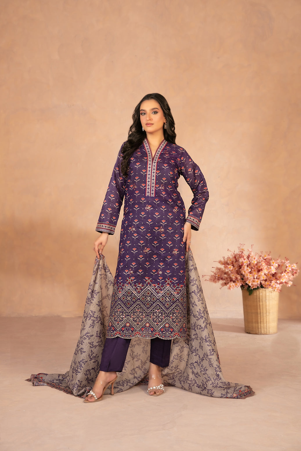 • Un-Stitched Embroidered Digital Printed Chamki Lawn Shirt Designs