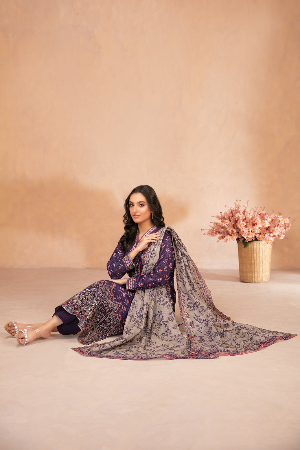 • Cutwork Embroidered Digital Printed Chamki Lawn Dupatta