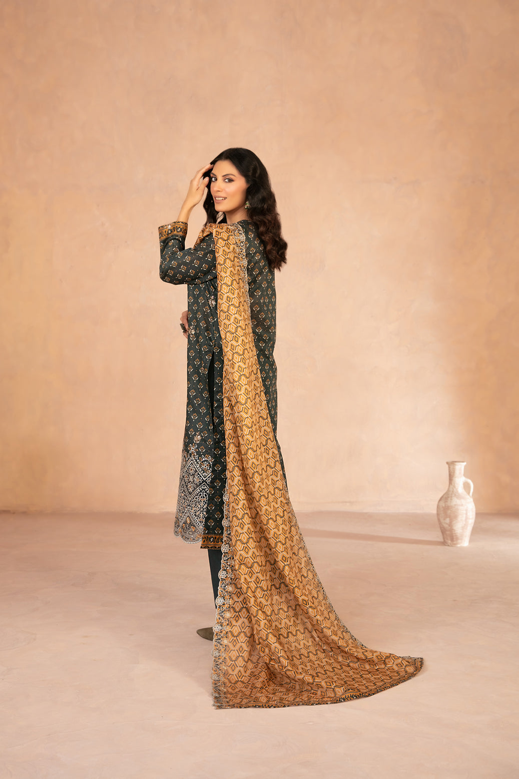 • Cutwork Embroidered Digital Printed Chamki Lawn Dupatta