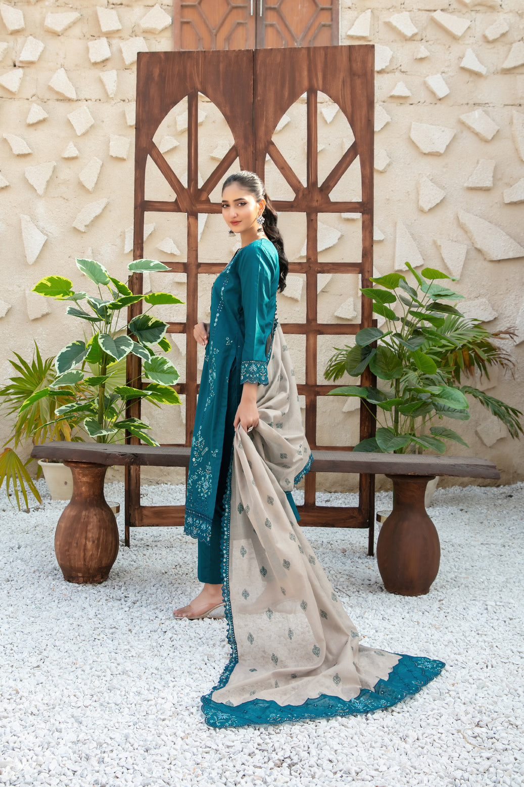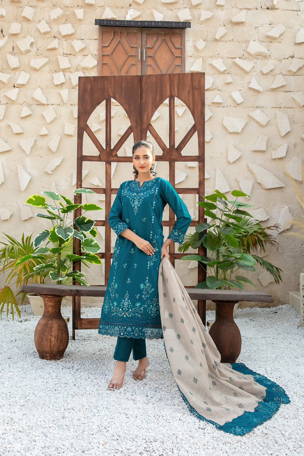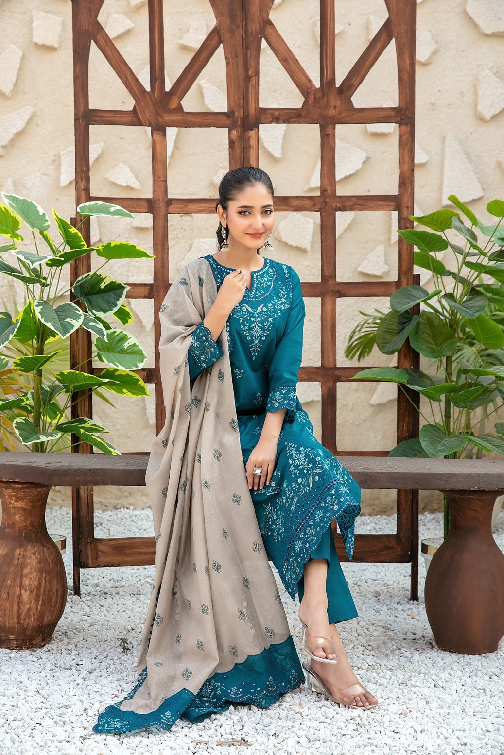• Exclusive Embroidered Printed Khadi Dupatta
