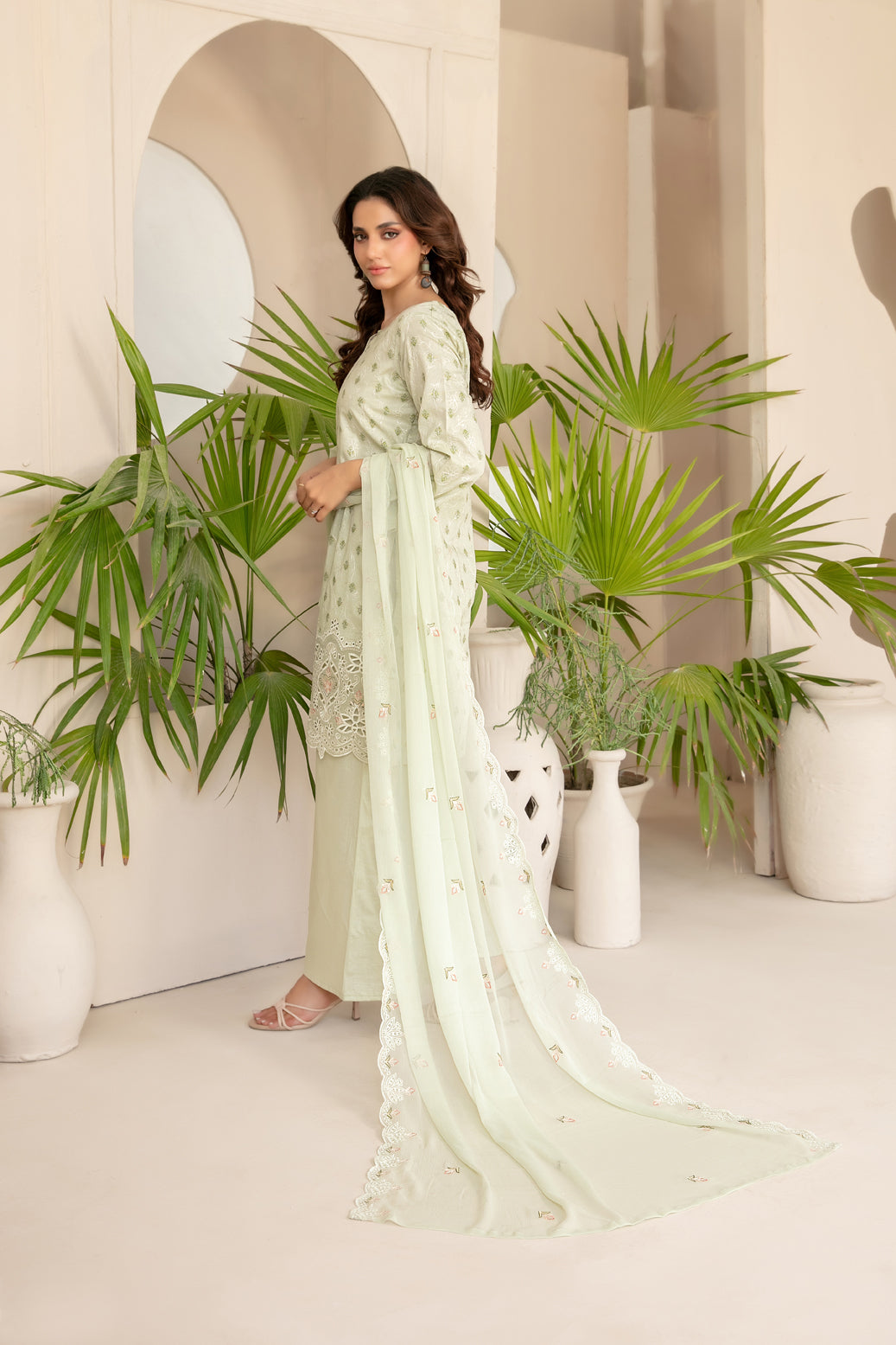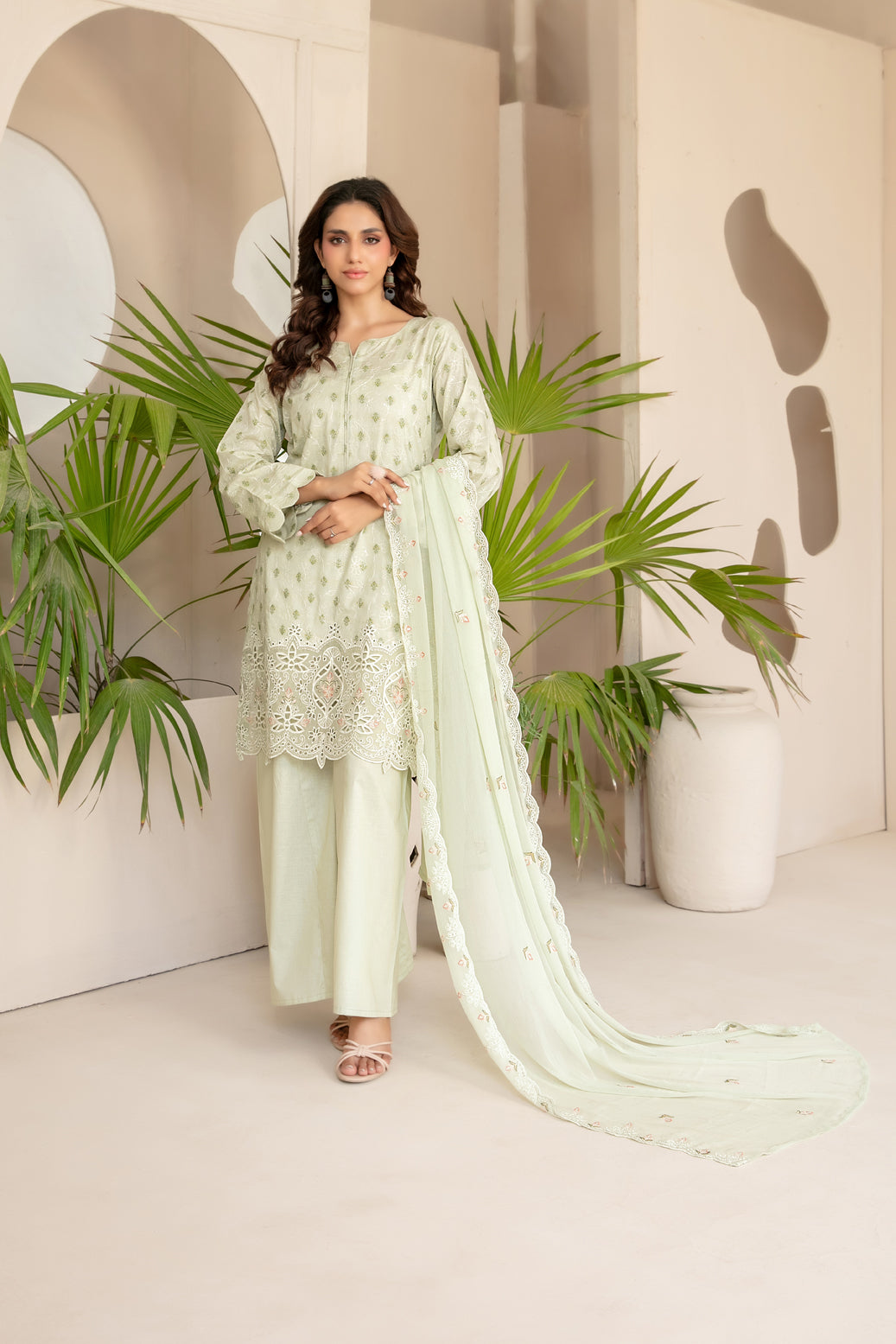 - Un-Stitched Jaal + Daman Embroidered Boti Broshia Lawn Shirt Designs