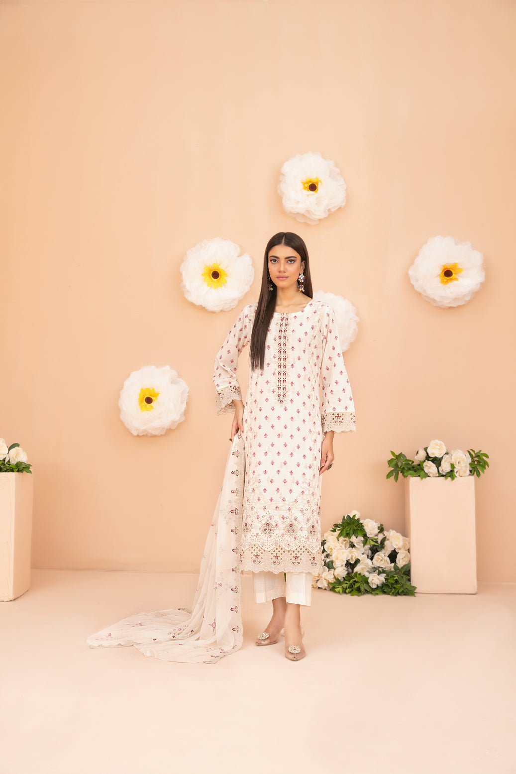 • Un-Stitched Embroidered Boti Broshia Lawn Shirt Designs