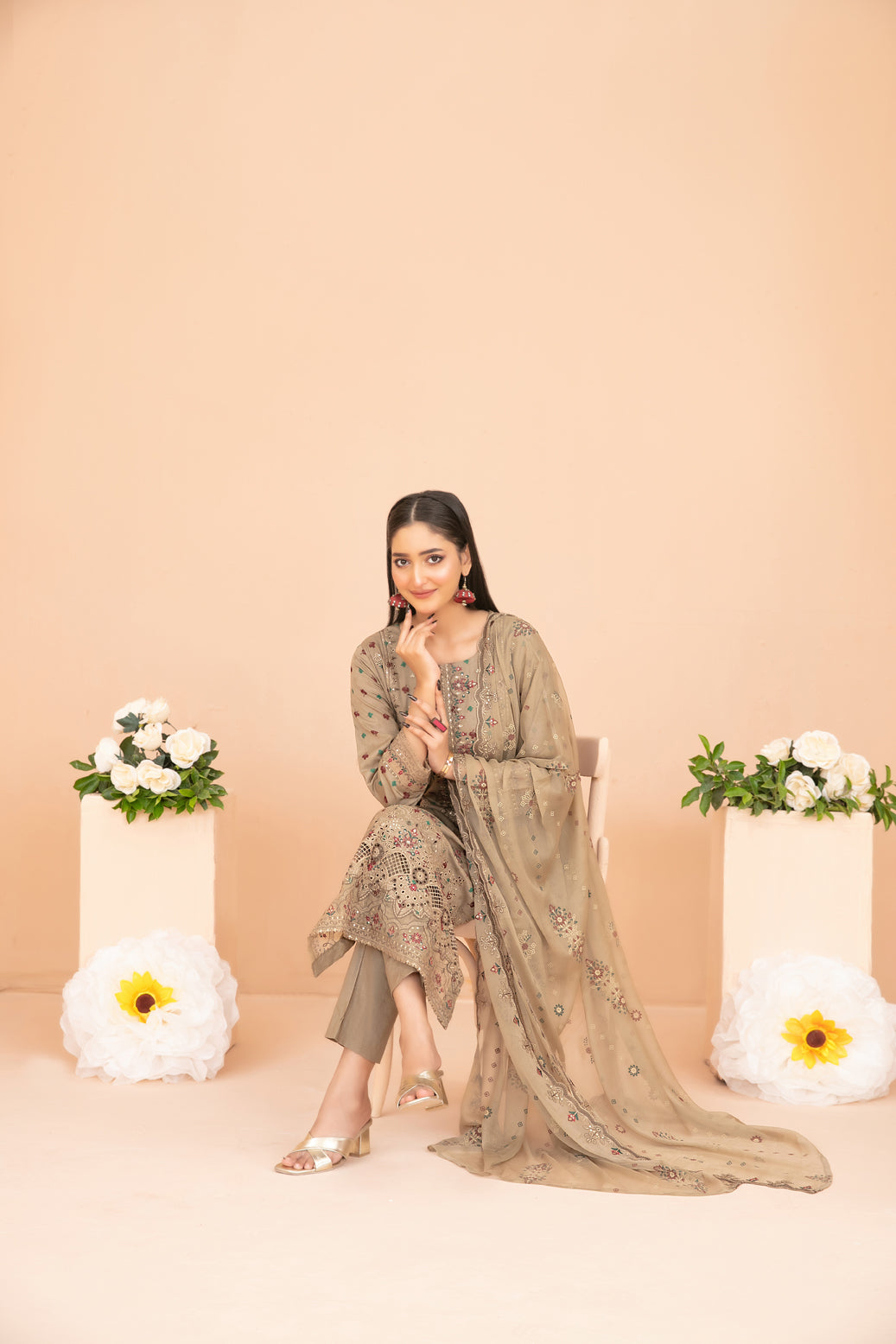 • Un-Stitched Embroidered Boti Broshia Lawn Shirt Designs