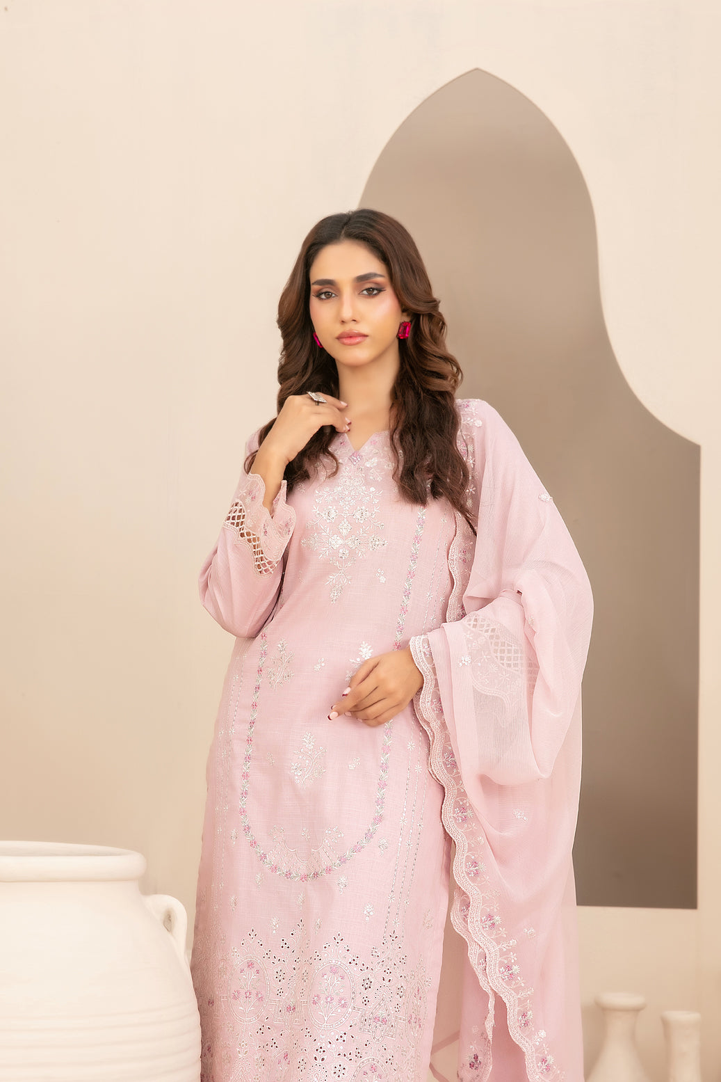• Embroidered Chiffon Dupatta