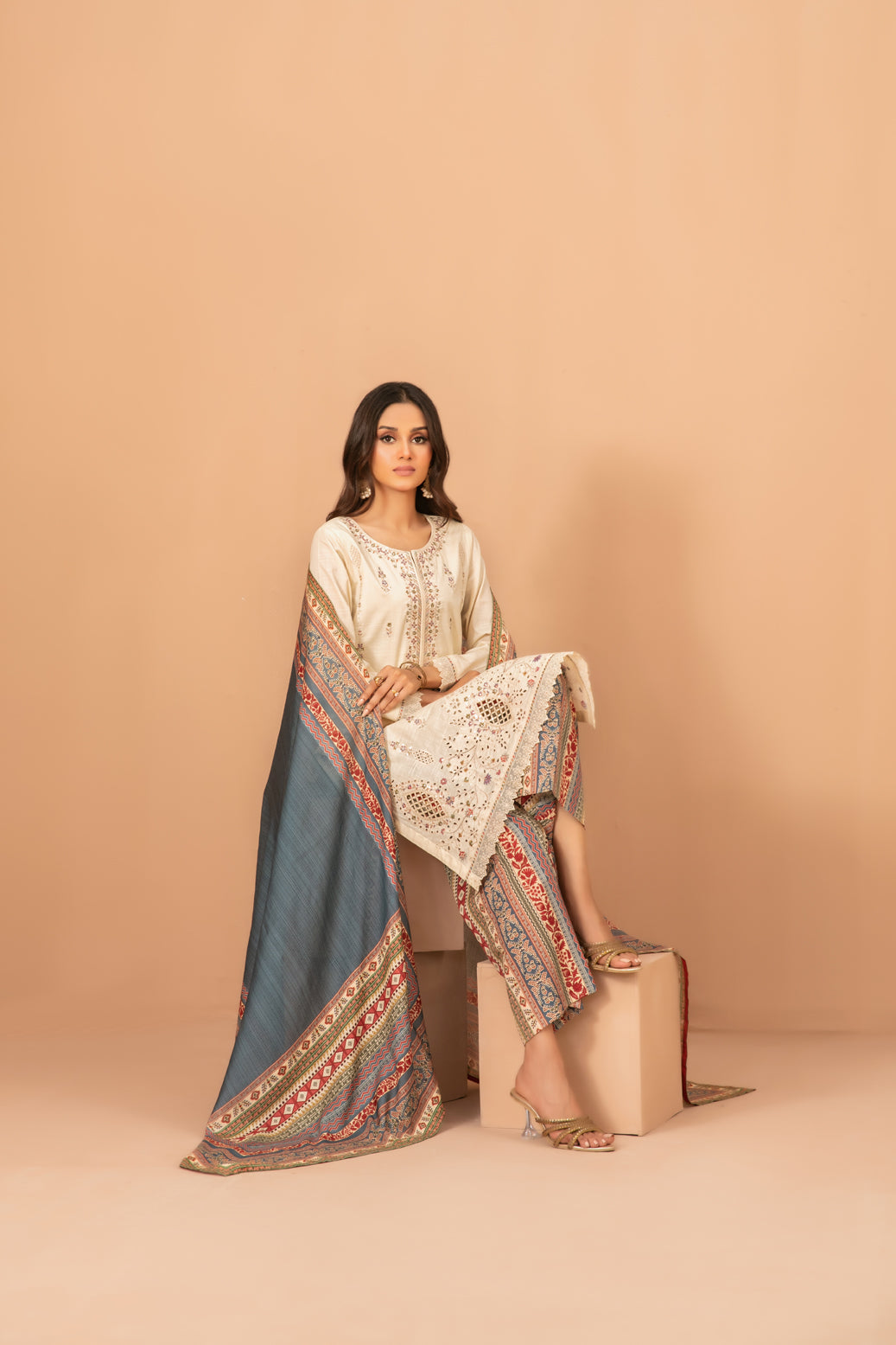 • Un-Stitched Fancy Exclusive Embroidered Cross Slub Lawn Shirt Designs