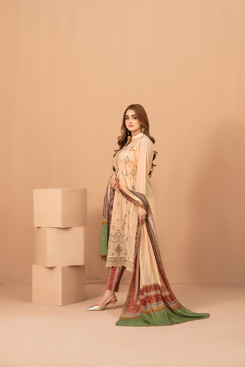 • Un-Stitched Fancy Exclusive Embroidered Cross Slub Lawn Shirt Designs