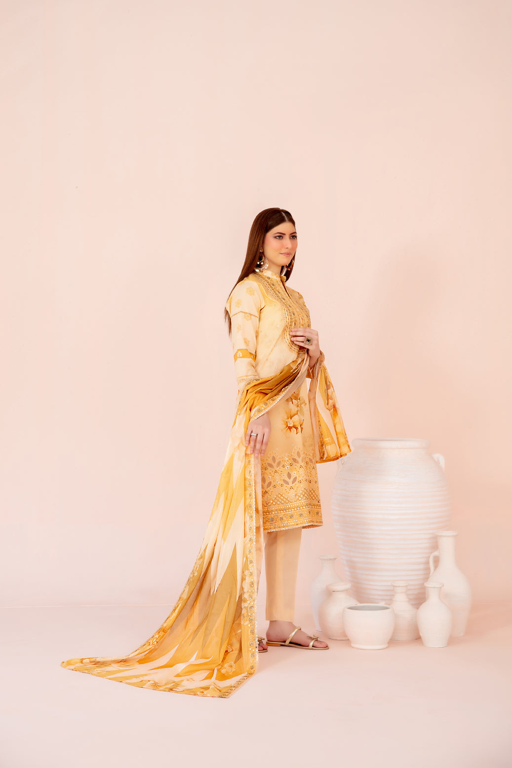 - Cutwork Embroidered Digital Printed Slub Lawn Dupatta