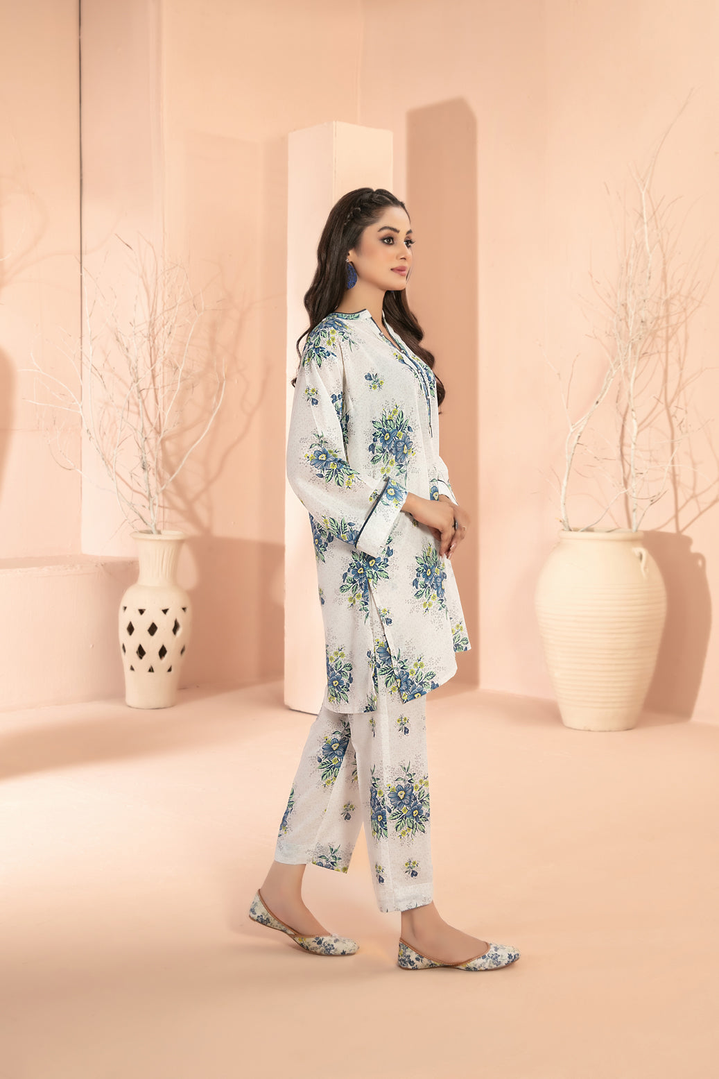 • Stitched Digital Printed Swiss Voil Trouser with Complimentary Khussa
