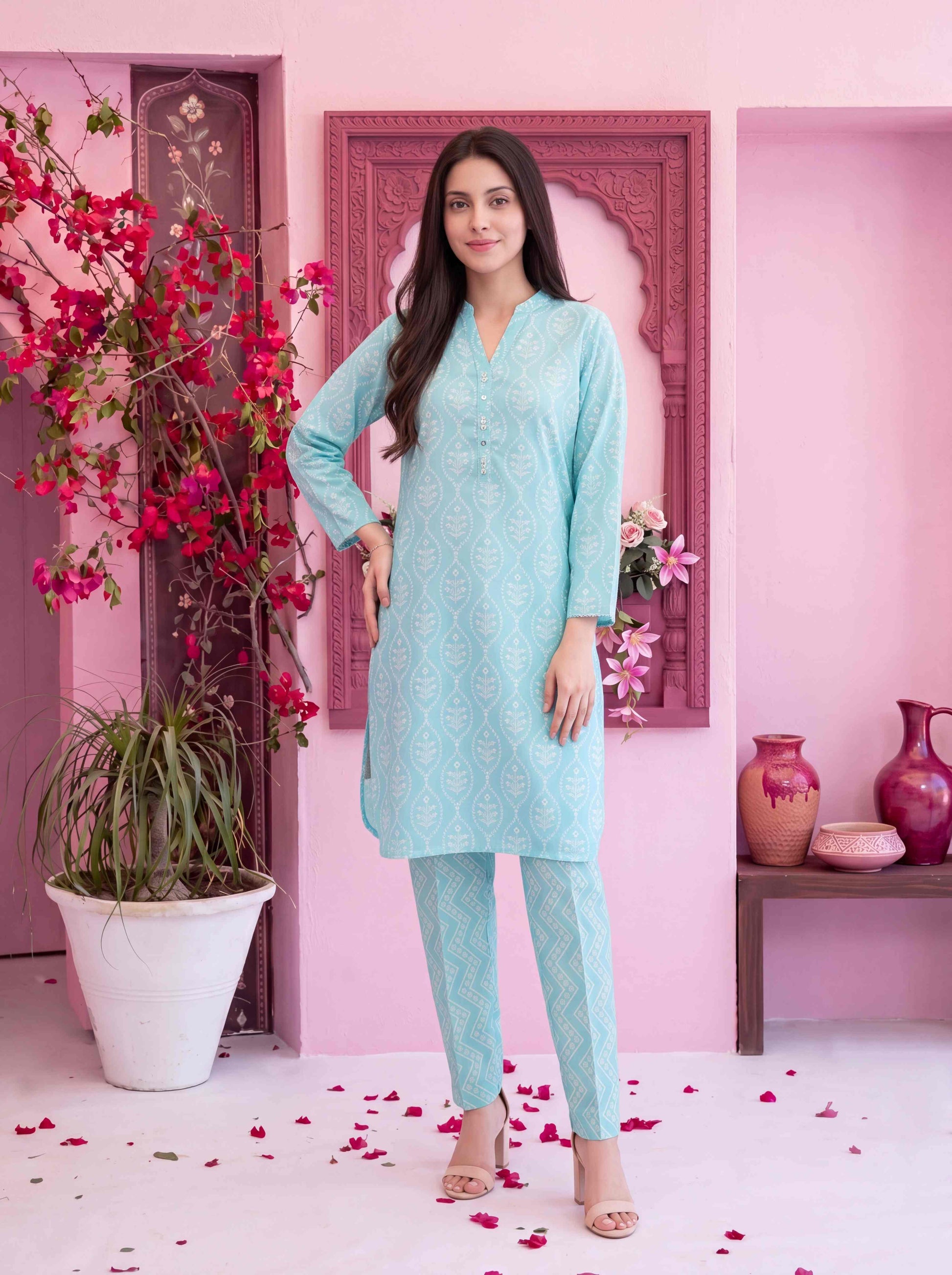 • Stitched Digital Printed Swiss Shirt designs with embellishments