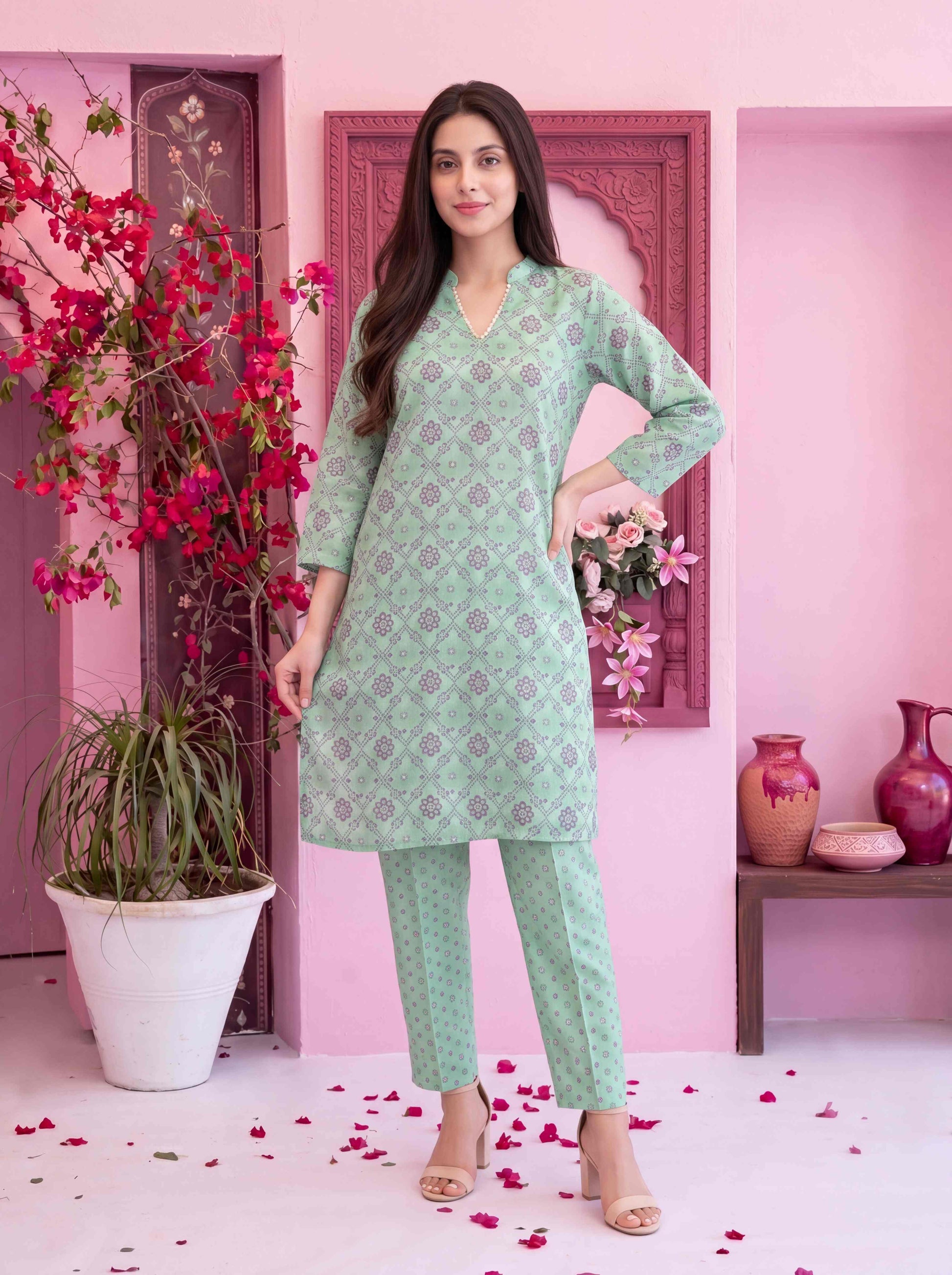 • Stitched Digital Printed Swiss Shirt designs with embellishments
