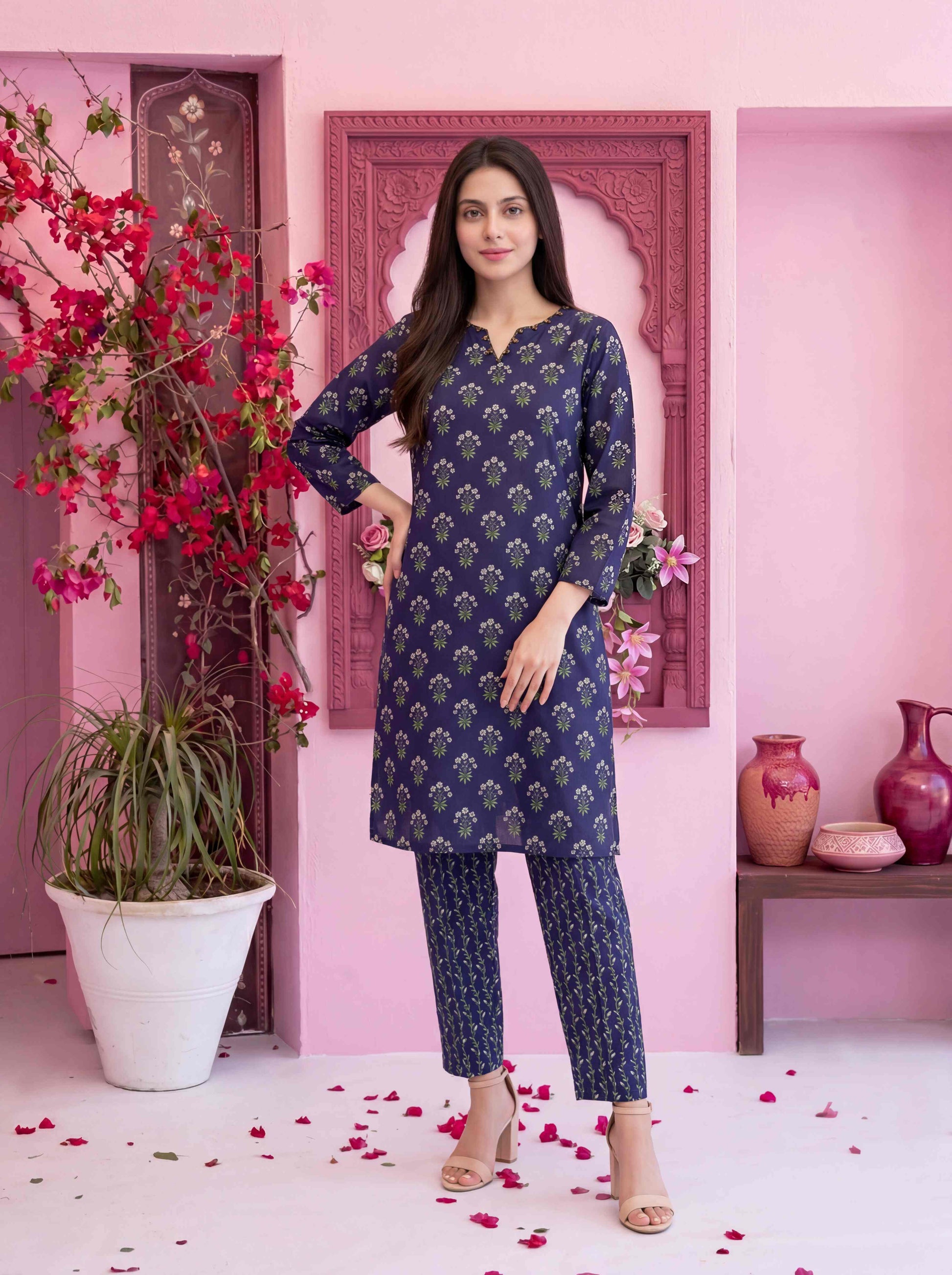• Stitched Digital Printed Swiss Shirt designs with embellishments